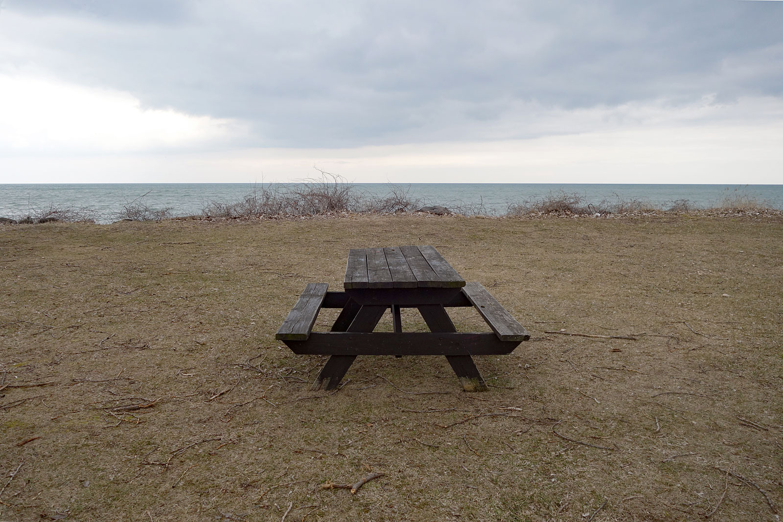 Today it was just Peggi and me. We made peanut butter sandwiches and we put those and two cans of beer into my backpack. We walked through the park, down Culver to the lake and across the bridge into Webster where we found a picnic table between the lake and the bay.