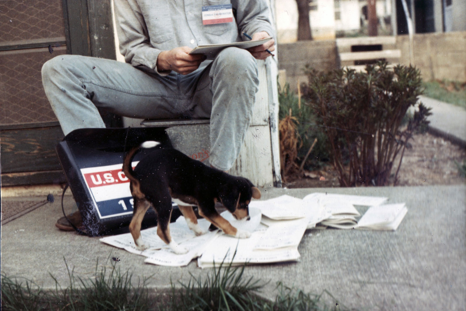 That’s my dog, Andy, sniffing the 1970 Census forms that I was responsible for filling out. It was one of the many part-time jobs I had in Bloomington, Indiana where I went to school for a couple of years. I’d go door to door, trying to catch the homeowner at home so I could ask him three or four pages of questions. Not everyone was cooperative. I’m guessing the Census taking process is all digital now. I wouldn’t want to be going door to door in this climate.