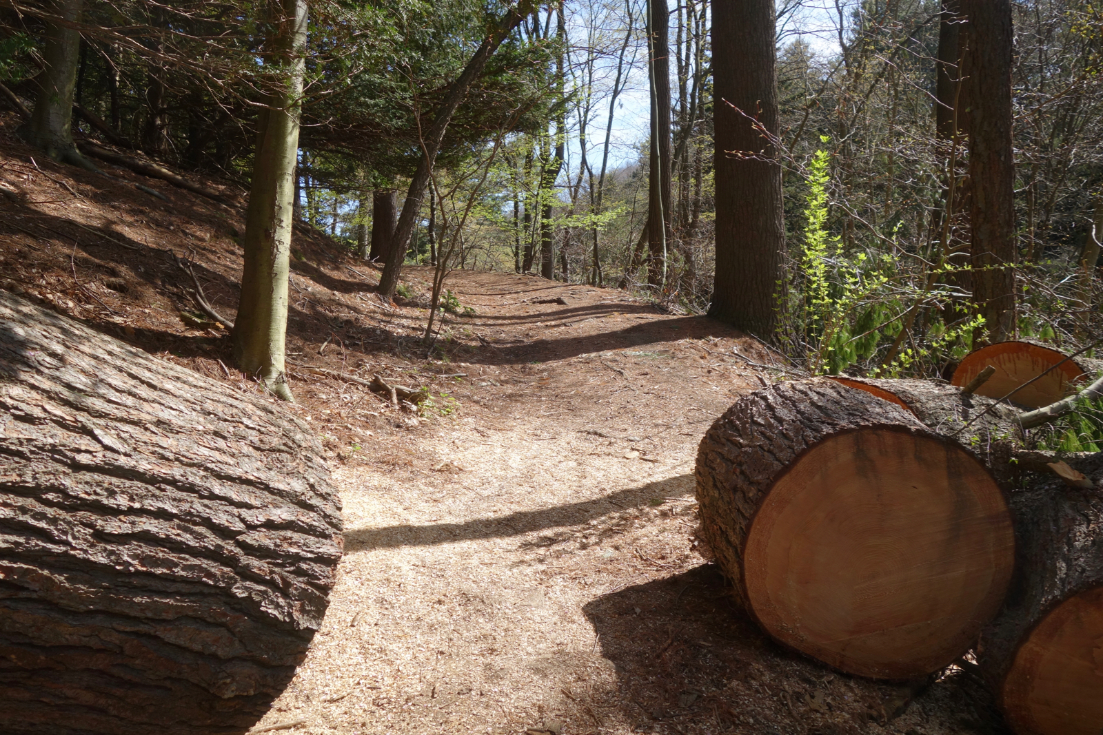 A big pine fell across this path in Durand over the winter. We crawled under it quite a few times and today we found that they had cleaned it up. The park has such a slim staff it takes them months and sometimes years to clear a trail. This is an especially nice one as it connects Zoo Road to Pine Valley.