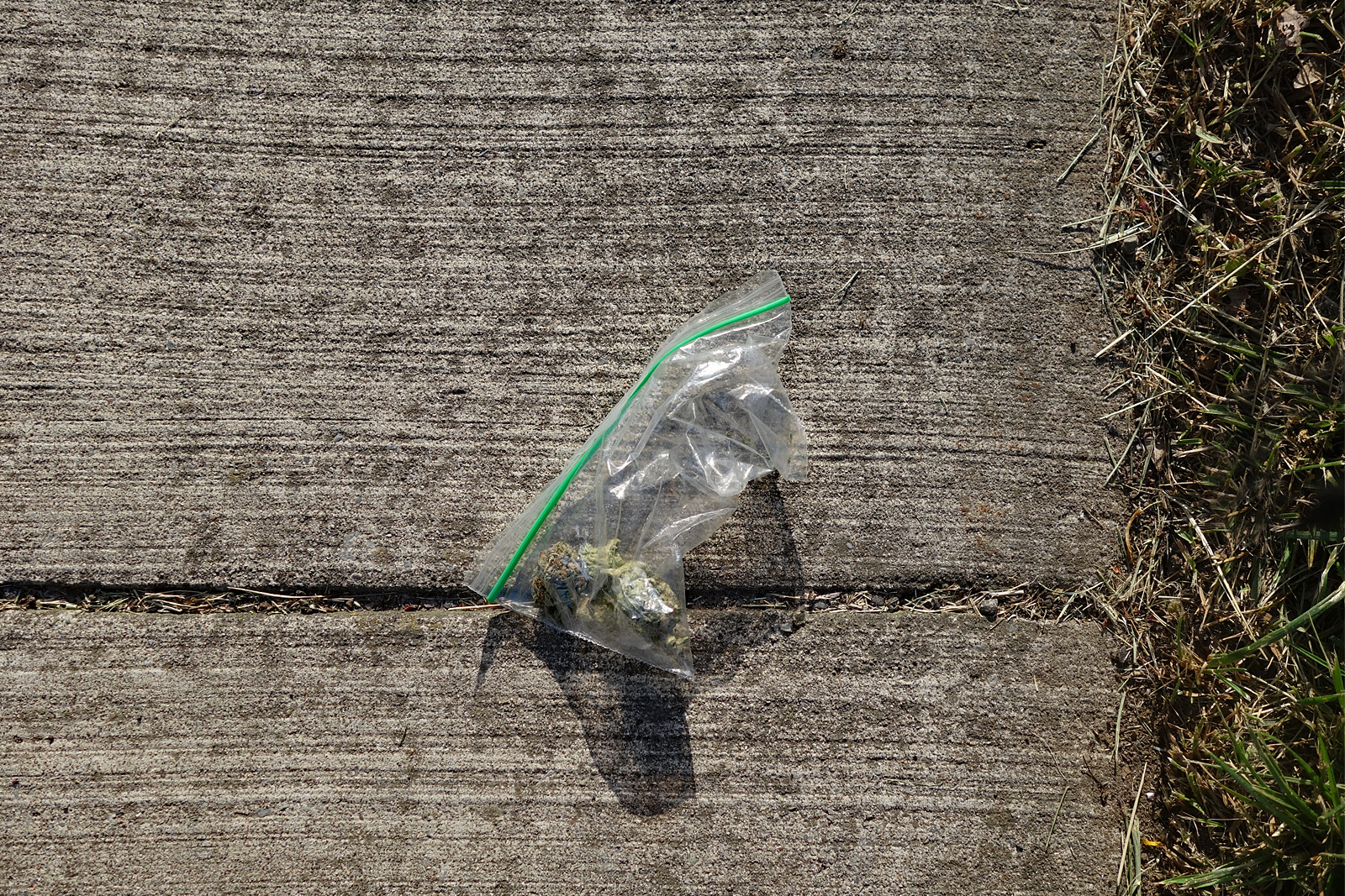 My LL Bean anti-tick socks were dirty so we walked in the nearby neighborhoods today. Just off Culver on Avondale I spotted a bag of pot laying on the sidewalk, a half sandwich sized baggie with three big buds in it. I picked it up with my left hand and made a mental note not to put that hand near my face. There’s a few neighbors on our street that might be interested in it.
