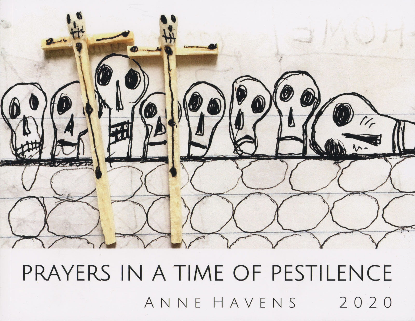 Anne Havens, who coincidentally was born on the same day in the same year as Pete, mailed us a copy of her recent book, “Prayers in a Time of Pestilence.” In the accompanying notes she describes the art as “telephone doodles.” Of course they are rich, sub-conscience expressions of this dark and scary time. Anne reminds us that Shakespeare wrote King Lear and Newton discovered gravity while guaranteed from the plague. And she sprinkles her spreads with G. K. Chesterton, Chaucer, Thomas Aquinas and Shelly – “If winter comes,, can spring be far behind?”