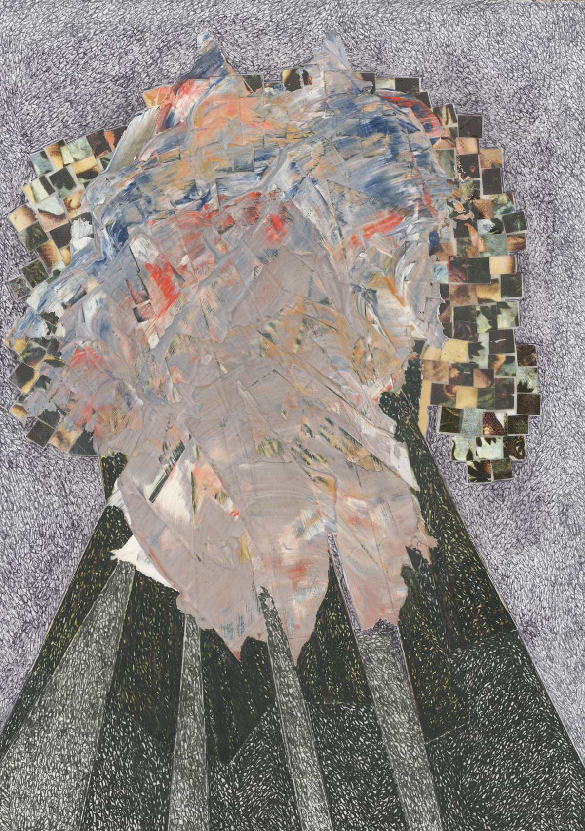 Two new pieces of art entered our home on the same day. Pete Monacelli gave us a Casin/collage/pen and ink piece entitled “Untitled Miniature #14”. It consists of a reconstructed reproduction of Titian’s “The Fall of Man,” a painting from the Prado.