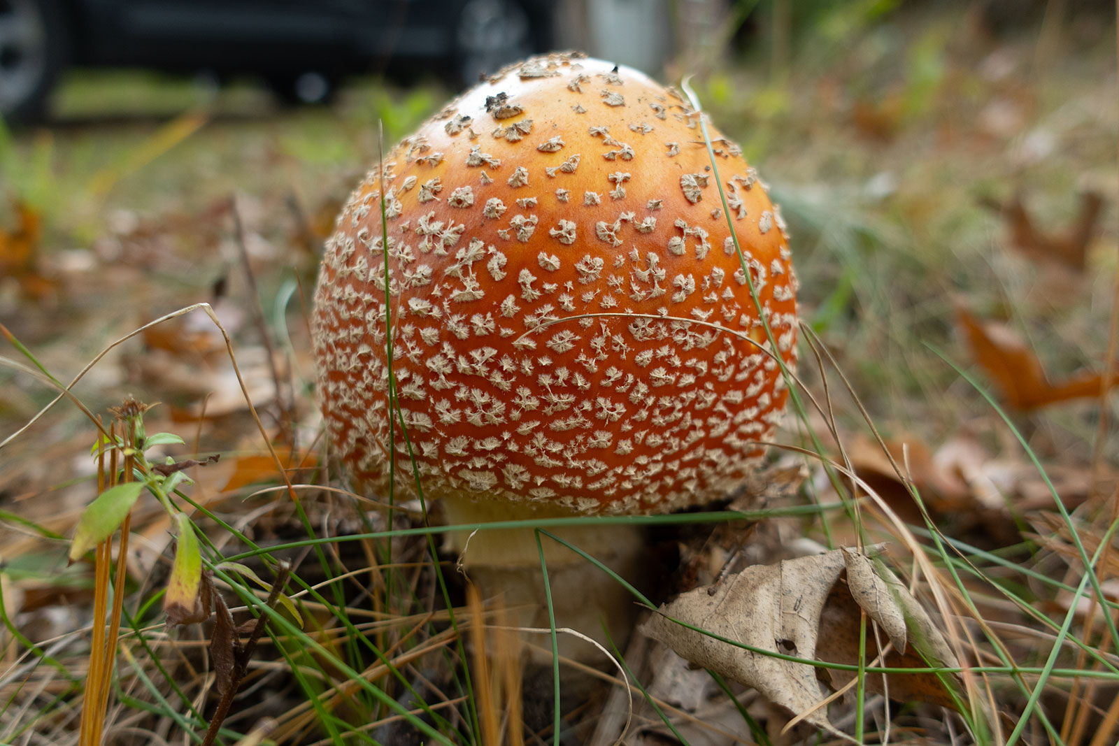 We lifted the lid on the firewood we have been storing for years and took a load out to our friends’, Jeff and Mary Kaye’s. We surprised them and helped them load it into their out building. We found this Amanita mushroom right by our feet when we got out of the car. It looks like it could contain the secret of the universe.