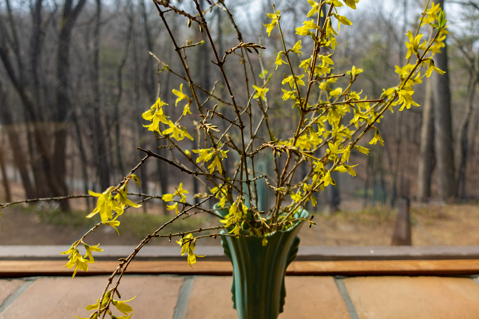 We nit meeting around. We’ve picked some forsythia clipping at different stages and their yellow blossoms are popping in our living room. We brought home a few clippings of fragrant witch hazel and our house smells like butterscotch. We have our seed packets out and the little plastic pots. The garden season has begun. The red wing blackbirds are our official bird and they are back, the early arrivals anyway, atop the tall grasses and dead trees that surround the marsh. Their call stops us dead in our tracks.