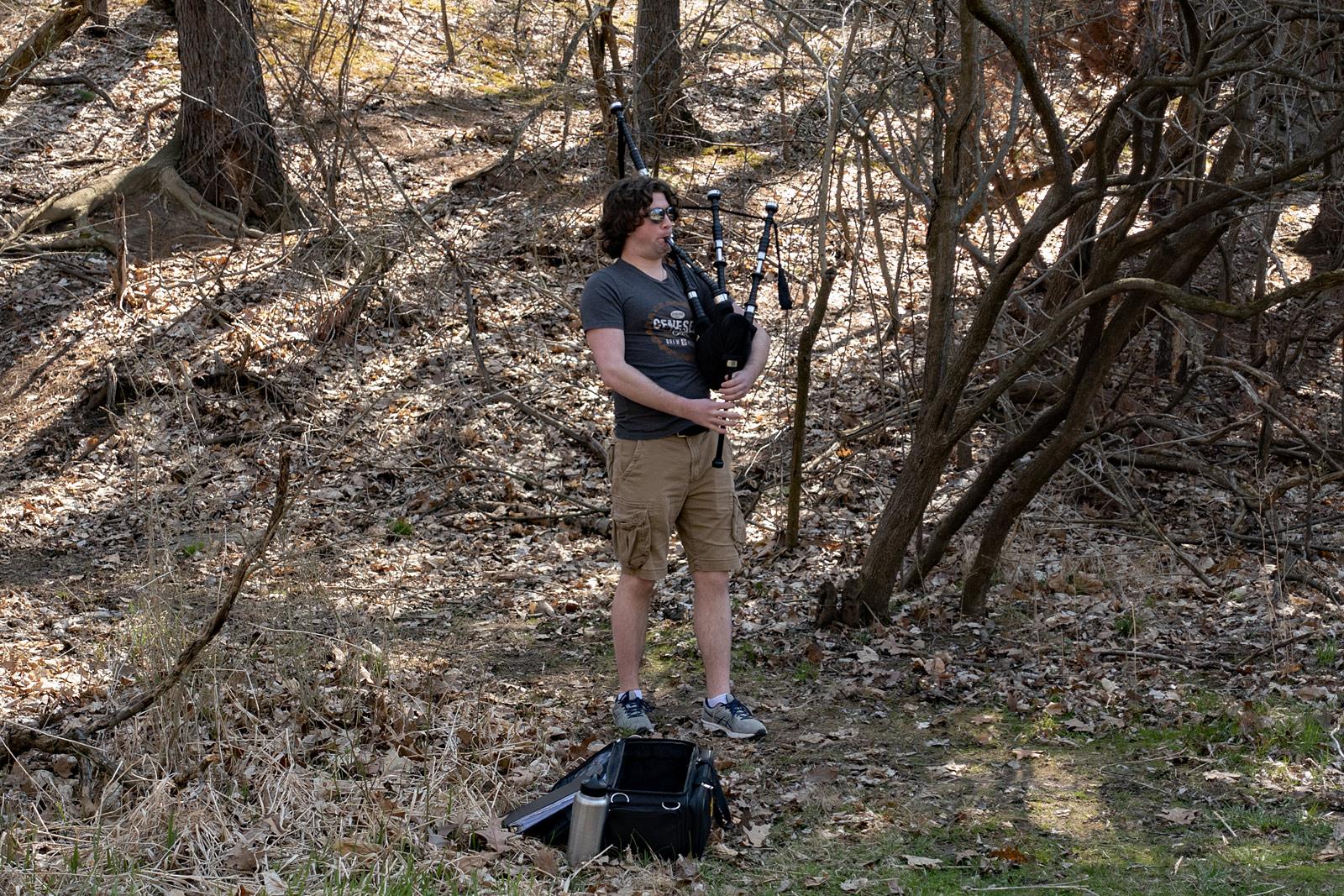 “Do golf carts have horns?” I wondered aloud as we got to the end of the trail near Horseshoe Road. It turned out to be a bagpiper player filling his air sack. The golf course just opened a few days ago and already I’ve found 13 balls near the trails that skirt the course.