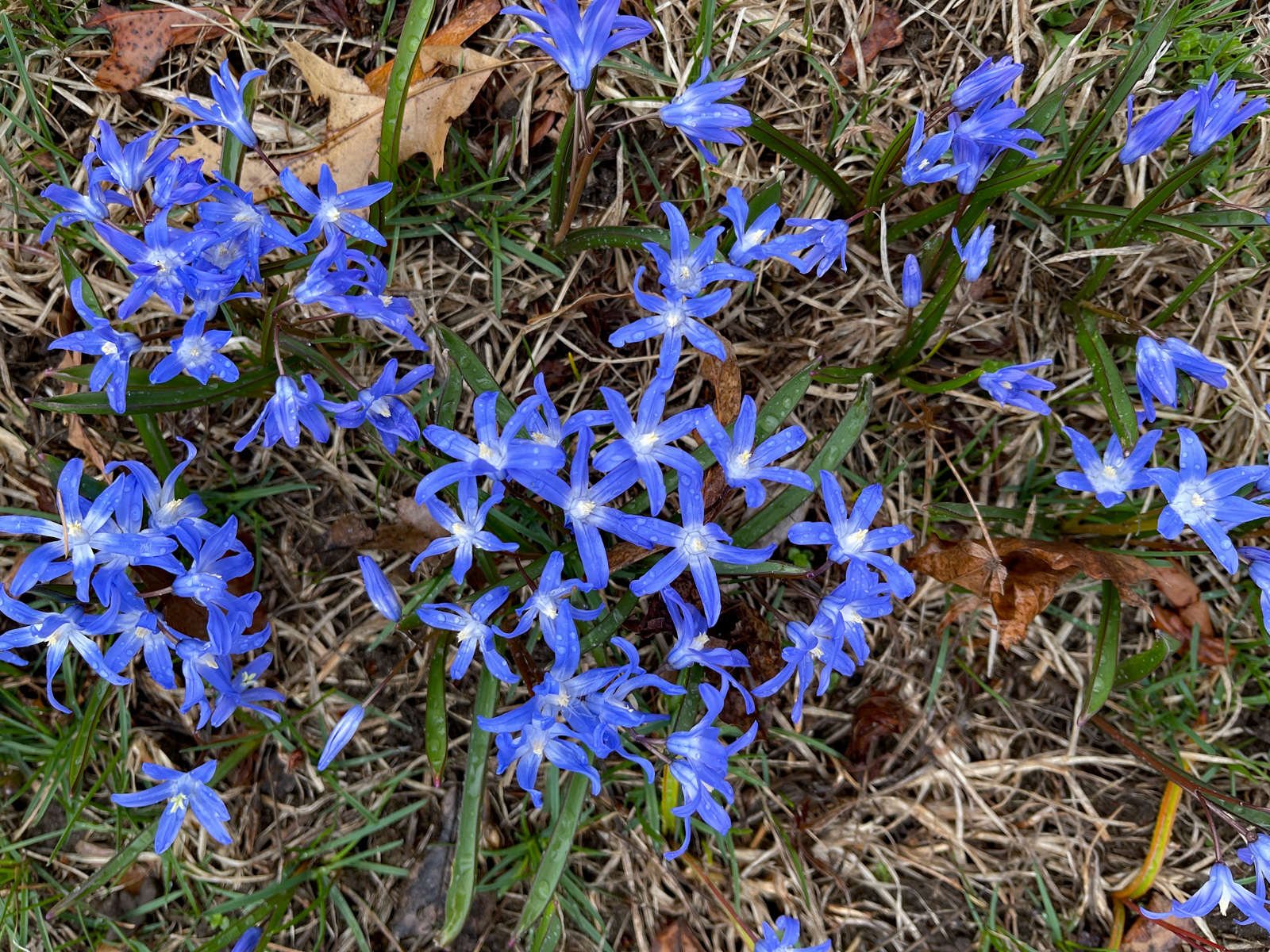 Peggi’s iNaturalist app identified these beautiful blue flowers as “Glory of the Snow.” Aptly named, standing proudly for todays light snowfall.