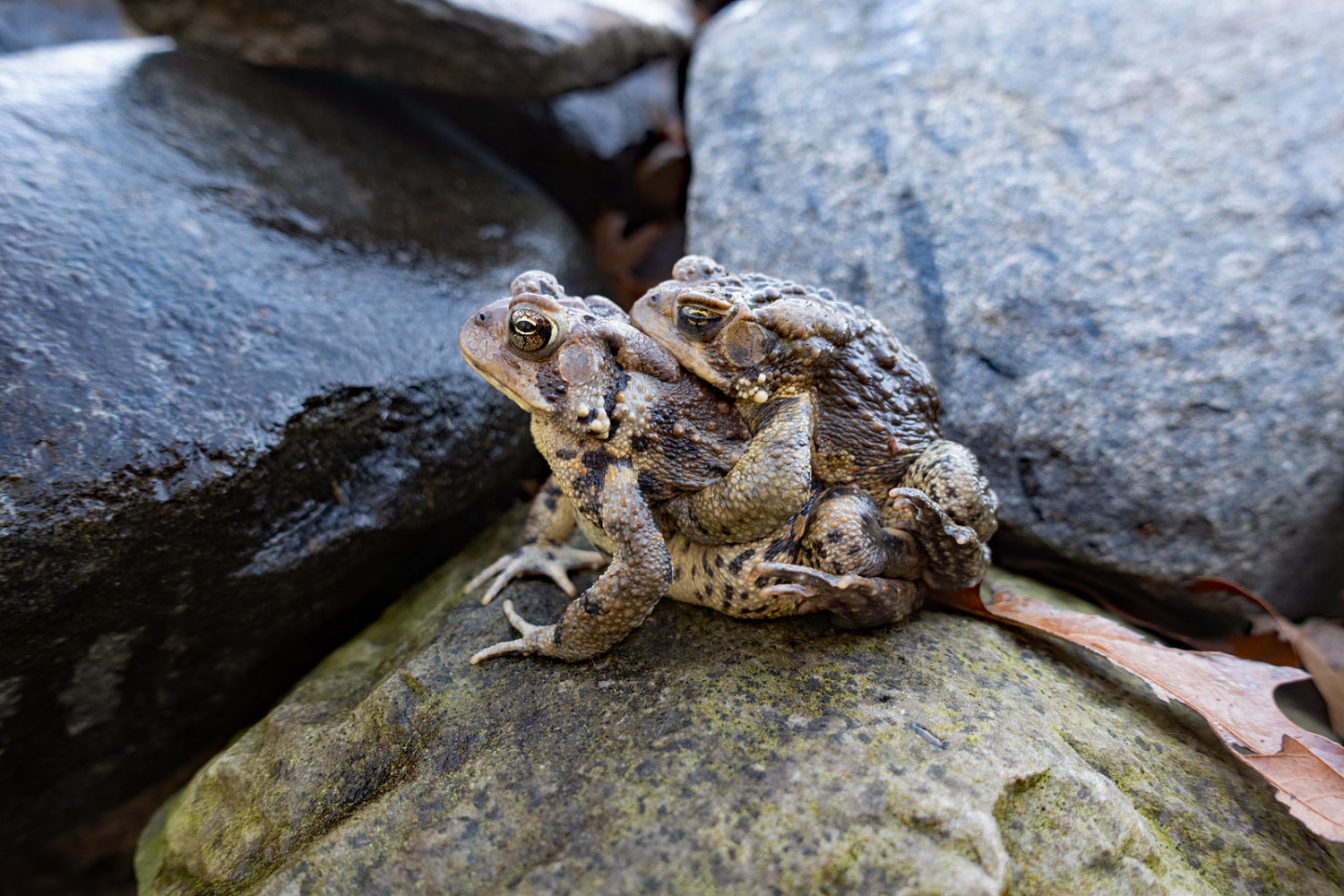 The males are usually smaller than the females and they are the ones that make all the noise. That’s how they attract the females. It works like a charm. The pond looks like a whore house with extra males calling and waiting their turn.
