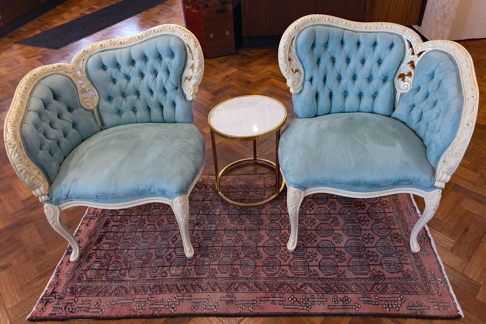 Before the doctor set her wrist he had his assistant cut Peggi’s wedding ring off. We were out walking last year on a perfectly dry road when one of Peggi’s YakTrax came off and caught the other. She went down fast and broke her wrist. Now that the pandemic has settled down we entered a jewelry store to have the ring repaired. They were having a Mother’s Day sale of a Victorian collection they had acquired and they brought in some furniture to kick it off.