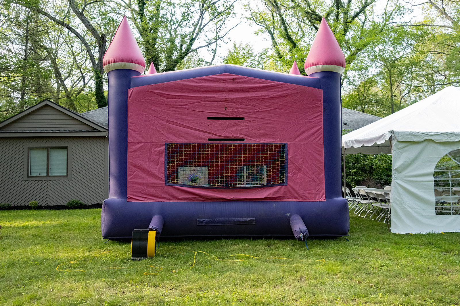 Our neighbors asked everyone on the street if they would allow parking in their driveways this Saturday. Their oldest is graduating from high school, the same Catholic school my father and Spaz went to. They set this bounce house up this afternoon along with a big tent.