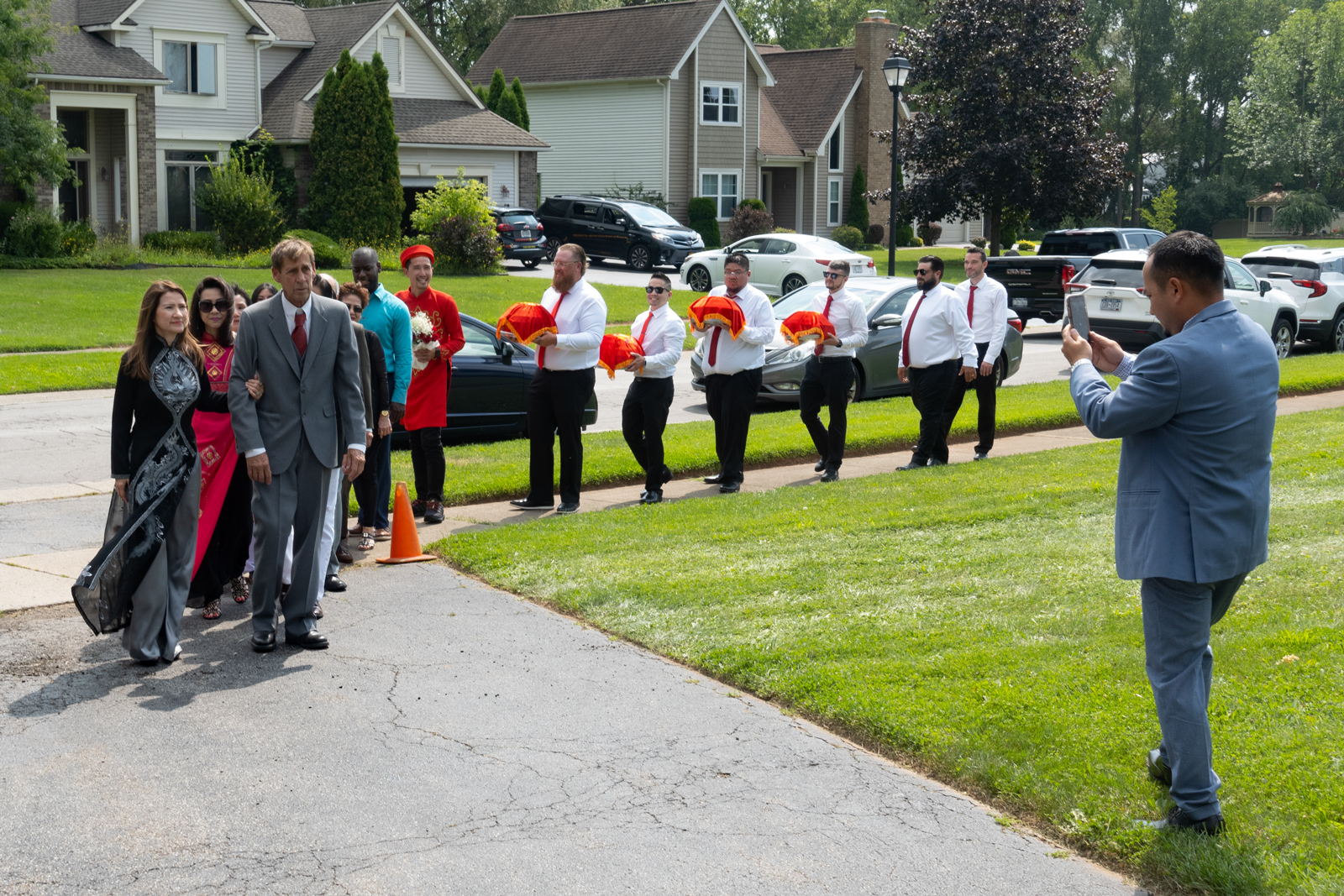 Peggi and I were invited to a Tea Ceremony, a traditional Vietnamese event based on a marriage custom where the groom goes to the bride’s family’s home and officially ask for their daughter’s hand. In this case, where the bride’s name is O’Conner, the ceremony was held at my brother’s partner’s home. Her son can be seen in red in the center of this photo.