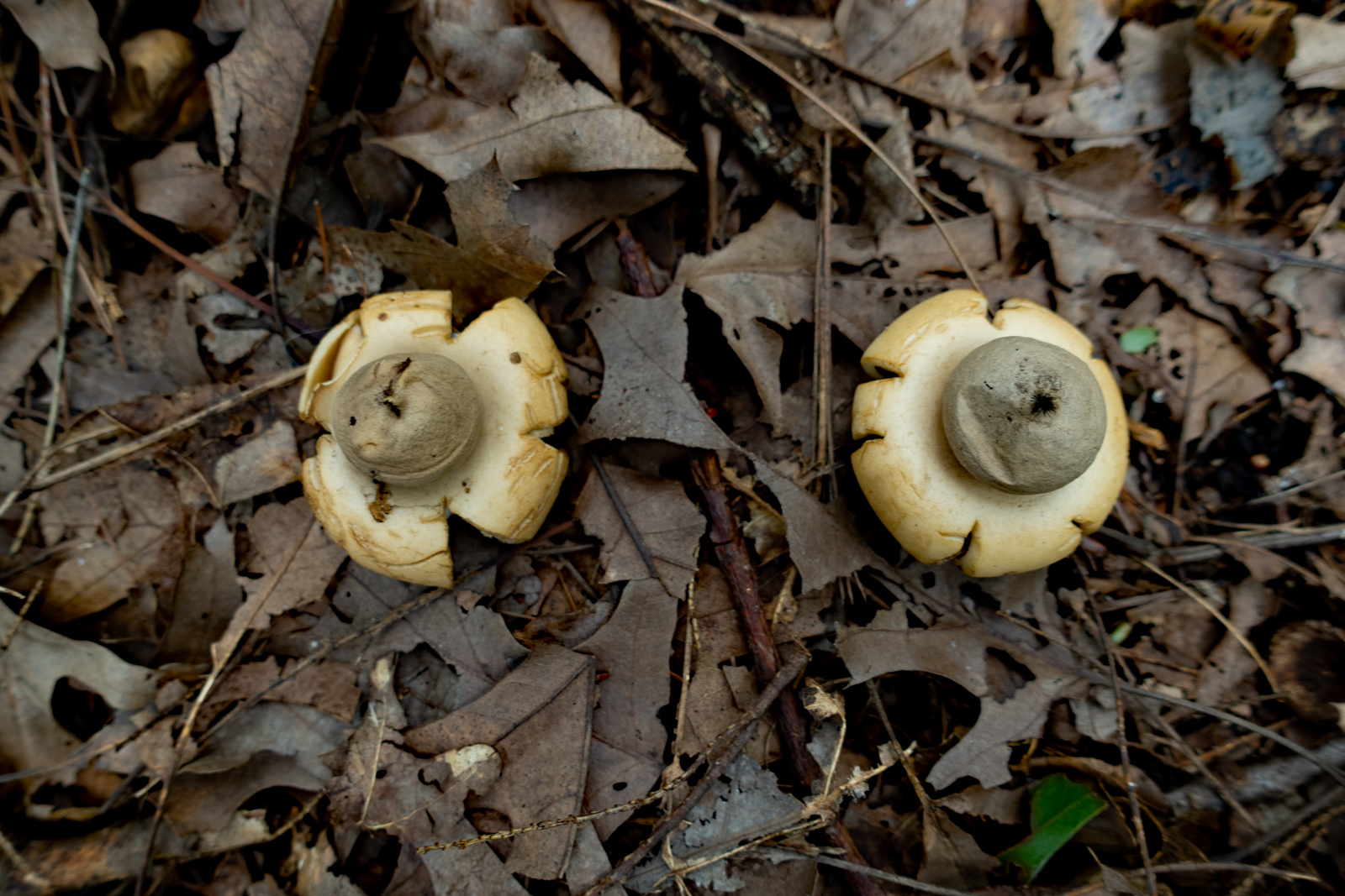 The guy in the wheelchair was all alone, sitting in the middle of a grassy area off Log Cabin Road in the park. I was trying to picture how he was able to to roll up the path and out that far when we spotted a woman scooping up something under a tree. As we walked by her I asked, “What are you collecting?” She smiled but clearly did not understand what I had said. I asked again and she said “mushrooms,” pronouncing it like a Russian. She looked Russian as well.