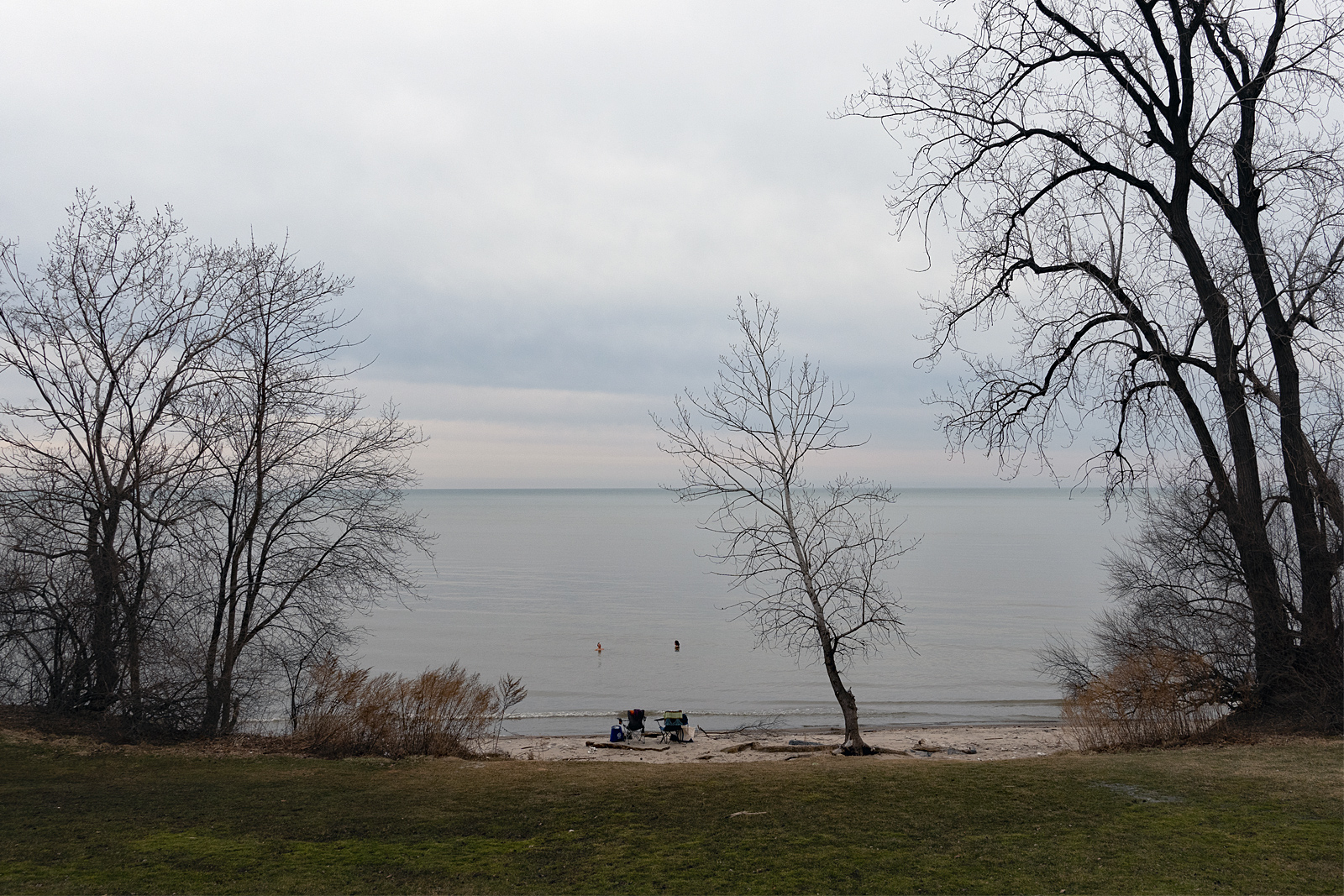 Instead of walking the last couple of days we picked up sticks on our property. The windstorm left small branches of dead wood everywhere. Our yard is clear and ready for tonight’s snowstorm. When we last walked (March 9th) we spotted these two swimmers looking pretty comfortable in Lake Ontario.