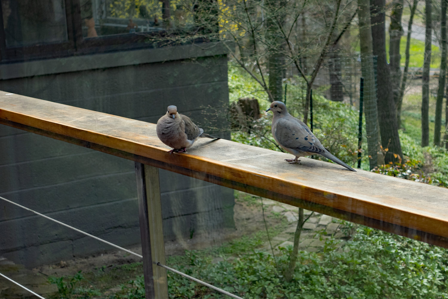 I love watching these birds. Woodsier than pigeons they spend more time on the ground than in the air. They waddle around and are always in pairs. I thought they were Morning Doves until I looked it up. They are probably called Mourning Doves because their coo sounds like a lament.