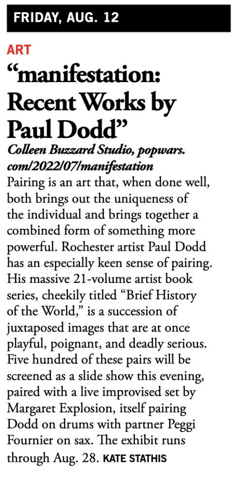The gallery is open by appointment until the end of the month and there is one more event in the space. City Newspaper ran a little piece about that.