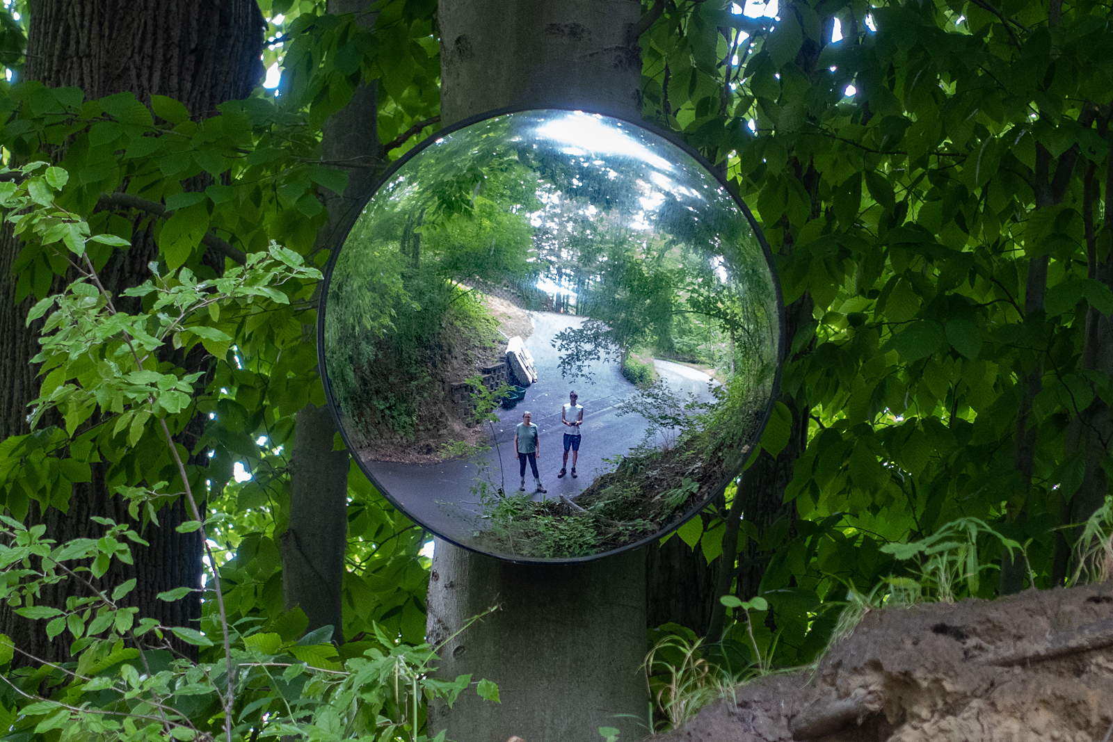 Corey will get a kick out of this photo. This mirror is right across the street from his house. That’s his old mattress in the driveway. We brought. back an armload of Collard greens from the garden, the regular, giant leaf plant and the Hen- Pecked version which looks exactly like it sounds. We thinned our carrots and brought back some young ones and Peggi made greens and beans with it all and we ate out on the porch with an ice cold NA Saint Pauli.