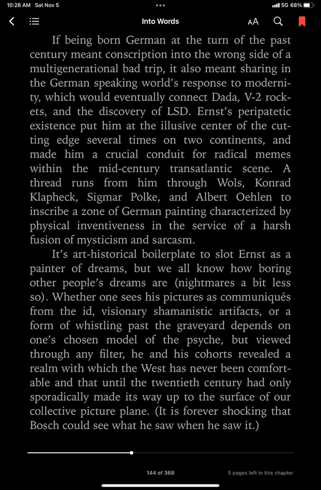 I am looking forward to reading the piece he wrote on Otto Dix. Here is a page from his book describing the work of Max Ernst.