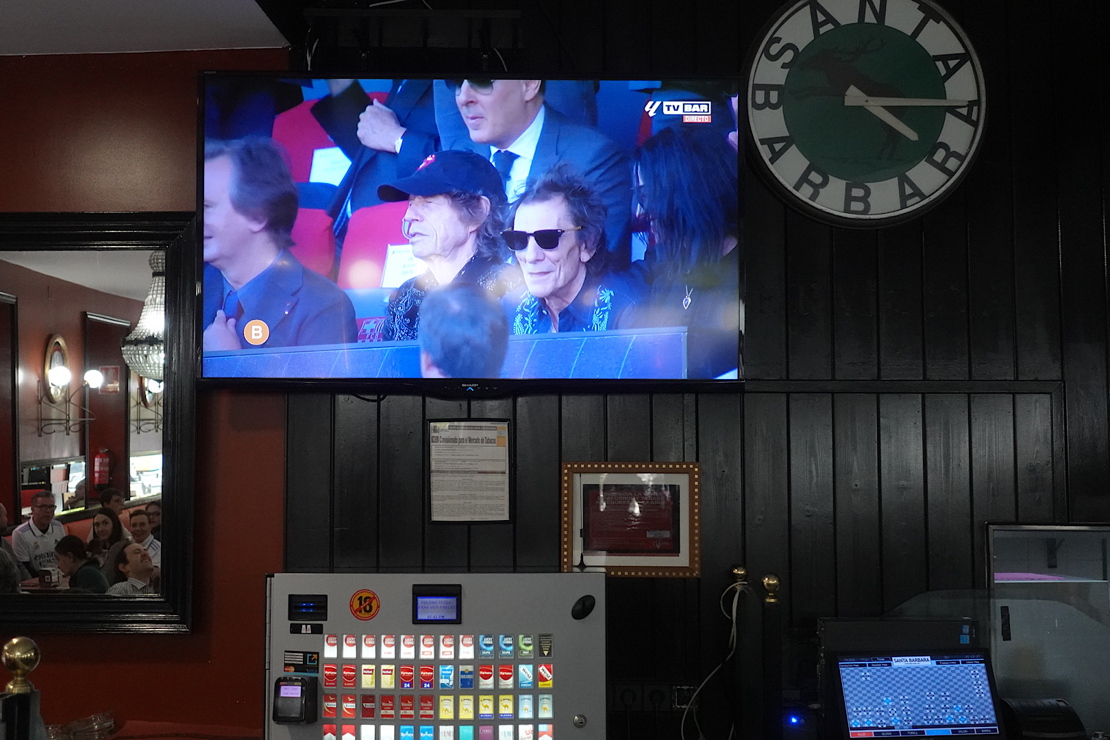 Two Rolling Stones at El Classico in Barcelona as seen from a bar in Madrid