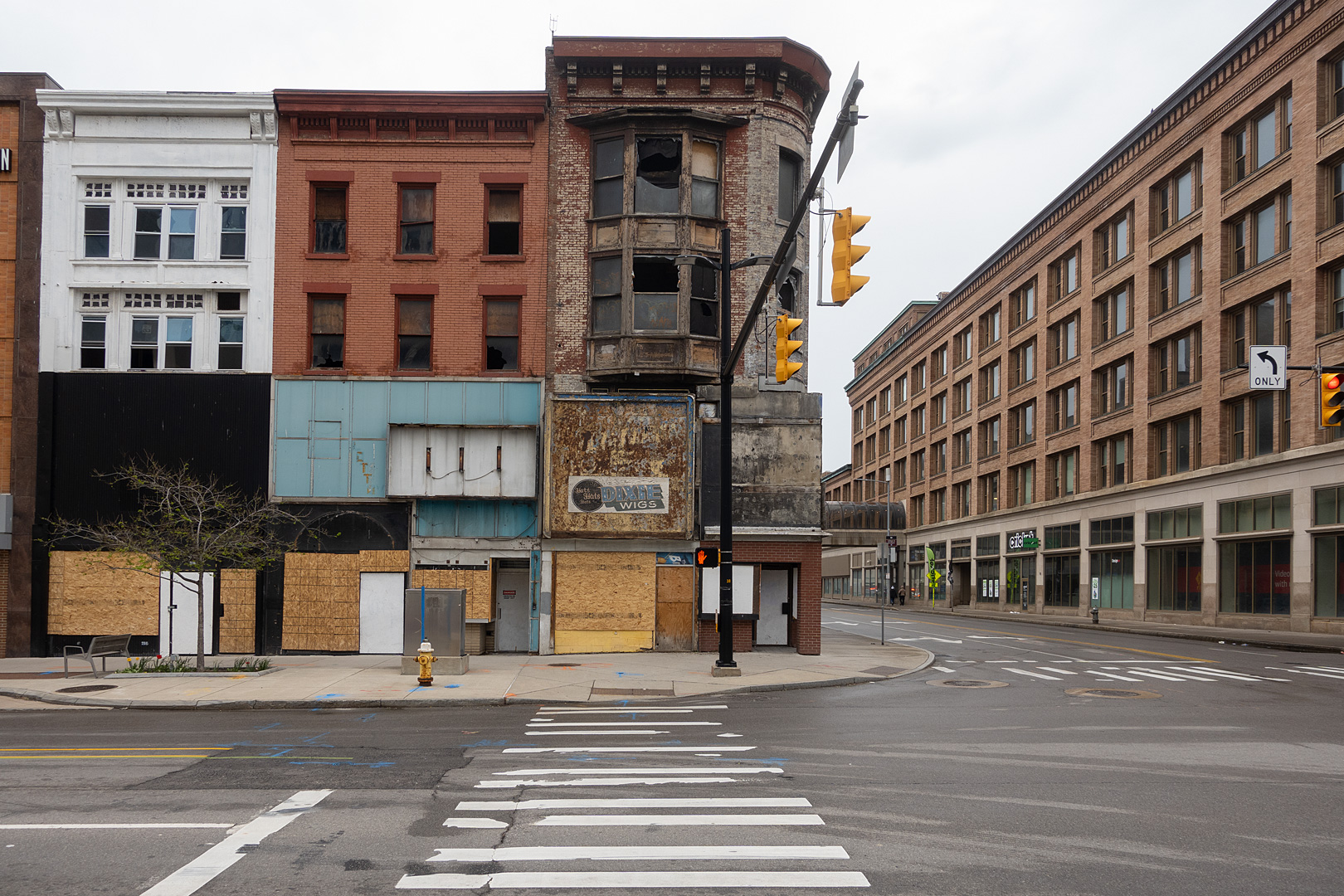 We took a walk around downtown and crossed the river and walked along it for a few blocks. We stopped for coffee at Feugo and sat out on the sidewalk. I had to take another photo of Main and Clinton. I waited til all the traffic passed to accentuate the bleakness.