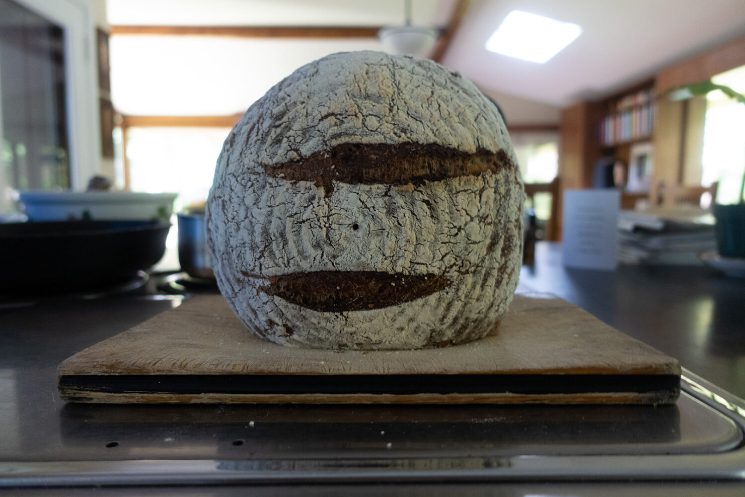 I didn’t notice the concentric circles on Gloria’s bread at first. It was maybe the third or fourth time we had some. She gave Peggi some of her sourdough starter a year or so ago and Peggi has managed to keep it alive by feeding it and making bread every other week. Often it is French or semolina loaves but my favorite is the Seeded Multigrain, Gloria’s recipe. But Peggi’s bread never had the rings on it until today. The secret is a wooden proofing basket called a banneton.