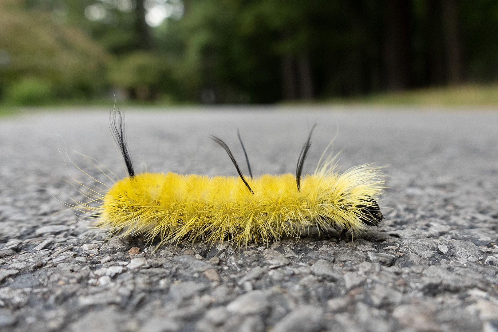 This little guy was slinking across the street in front us today as we headed into the park. Peggi took a photo, submitted it to iNaturalist and identified it as an American Dagger, the caterpillar stage of a large moth. Such a dandy! We routinely identify leaves, trees, nuts and insects while we walk. Well, maybe once each walk, but I use the word “routine” because we take it for granted that we can identify something with our camera.