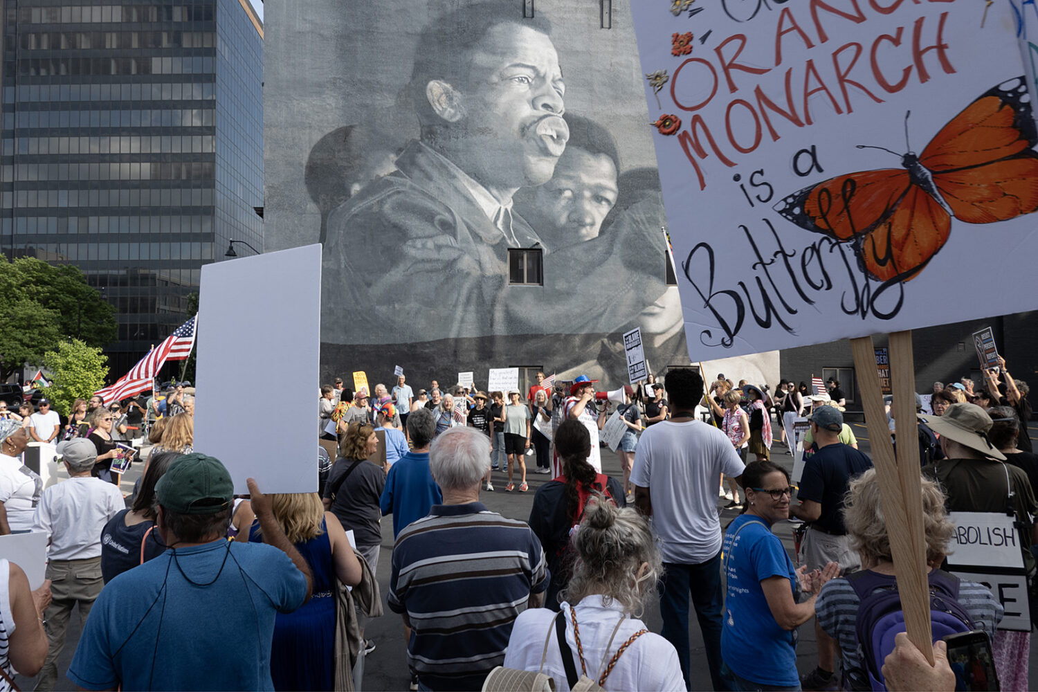 I was at that mural, almost from the same vantage point. I must have seen the back of your heads. I parked near City Hall to join in there since marching wasn’t in the cards. Sorry I didn’t spot you. Rally on!
