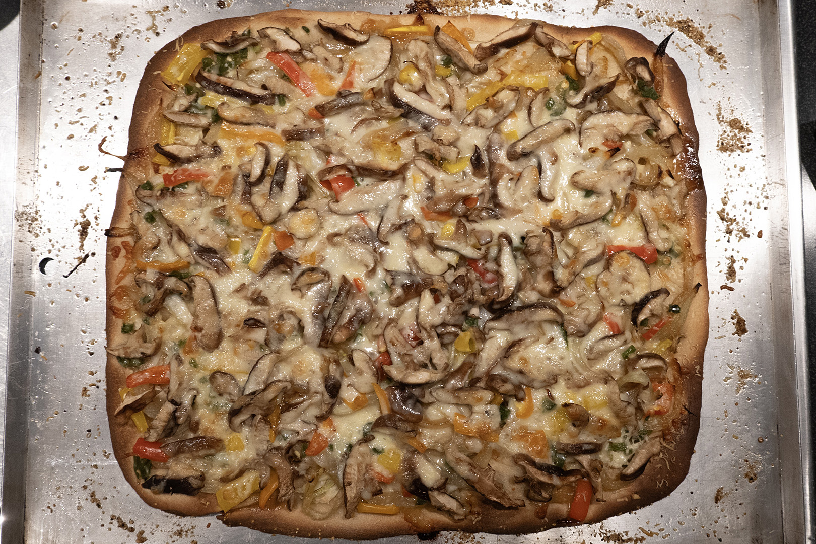 Back in the 80’s I would watch professional photographers like Chris Maggio tart up food before photographing it. Sometimes dyes were involved. Lighting and timing were crucial. Nowadays everybody bangs off pictures of their food. I took the photo above back in January. It looks like a hearty winter pizza. Gloria gave Peggi some sourdough starter years ago and Peggi continues to feed it even if she doesn’t have time to make bread. Lately she has been making pizza dough with it. We had a really good arugula pizza a while back but I guess I neglected to photograph it.