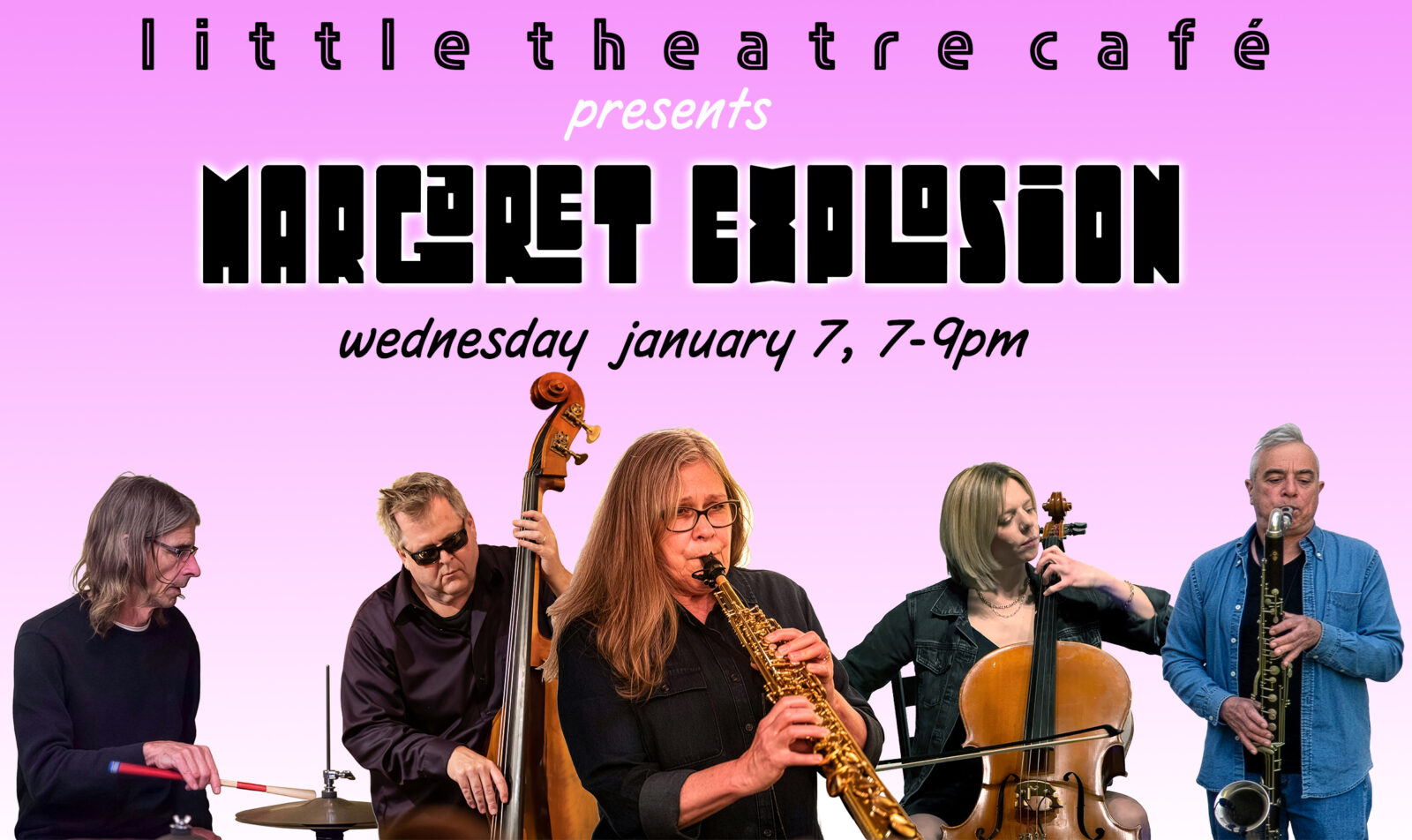 I’m kind of thinking all five members of Margaret Explosion will there on Wednesday. You never know. One thing I do know is that it will be different. The song above was recorded at our last performance. We made a short video for it. Looking forward to Wednesday.