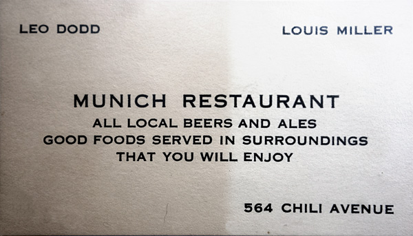 Leo Dodd Sr., my father’s father, was a bootlegger during Prohibition and when that finally ended he and a partner opened the Munich Bar on the west side. When World War II broke out they quickly changed the name of the place to the Dodd Miller Tavern.