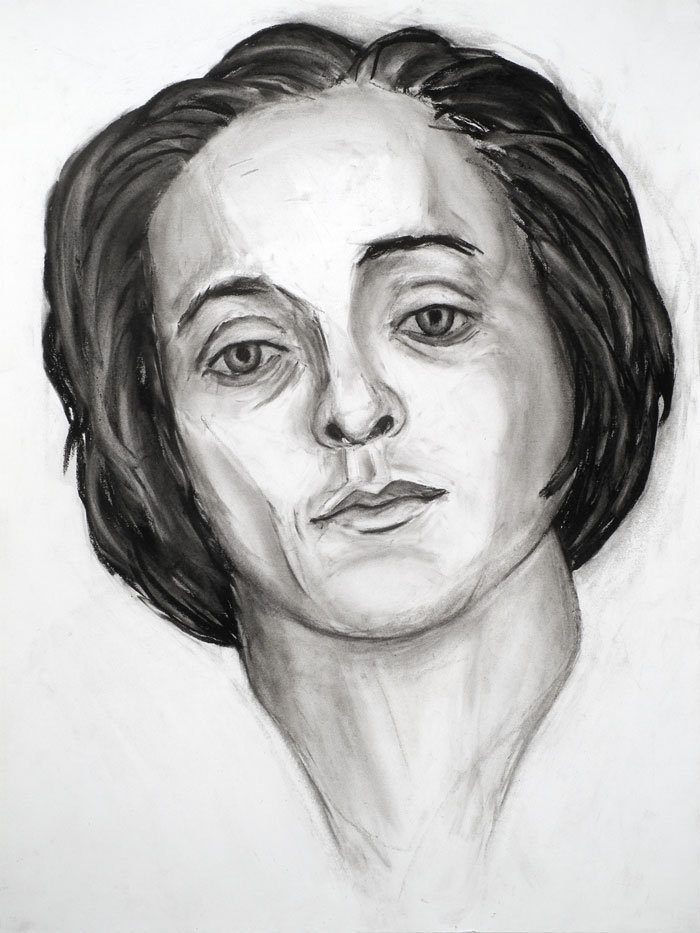 2012, 22″w x 20″h, charcoal on paper, Based on Passion of Saint Joan