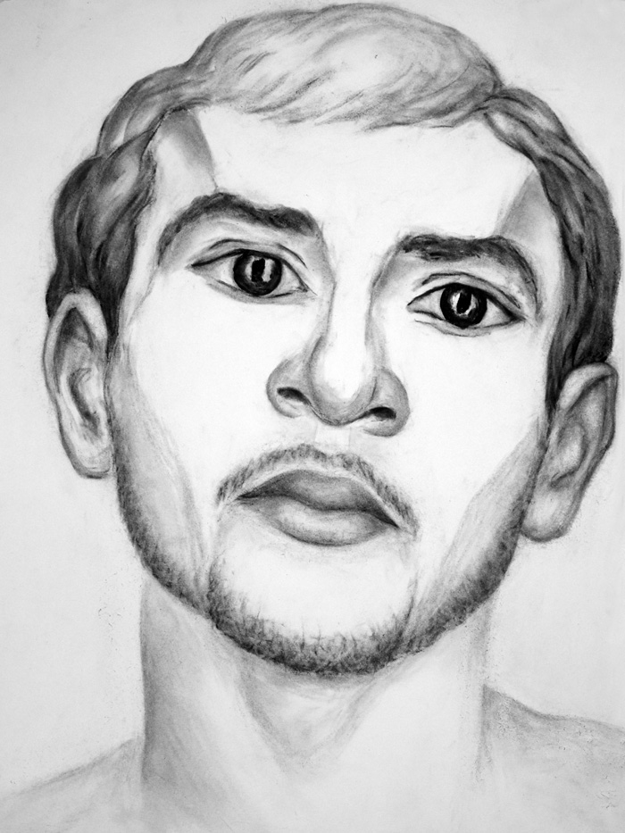 “Models From Crime Page” Charcoal Drawings 2012-15 18″w x 24″h each, charcoal on paper – click images for enlargements