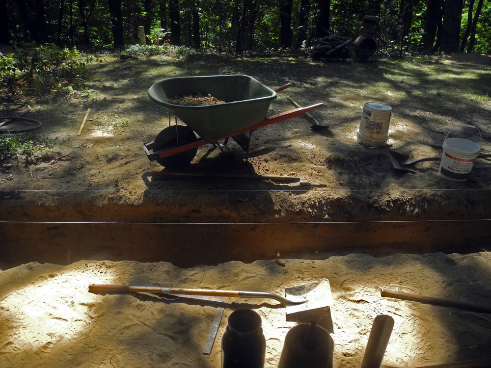 We’ve been digging a small footer in the back yard for the last week. Any day laborer worth his salt would have it dug in a day but we’ve been struggling and the whole street knows it. The earth in this part of our yard has not been disturbed since the ice age so the sand is on its way toward becoming sandstone rock.