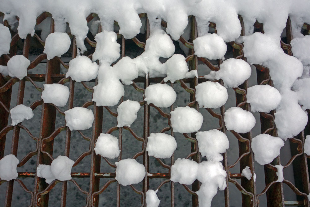 Snow on bridge grate in Durand Eastman Park in Rochester, New York
