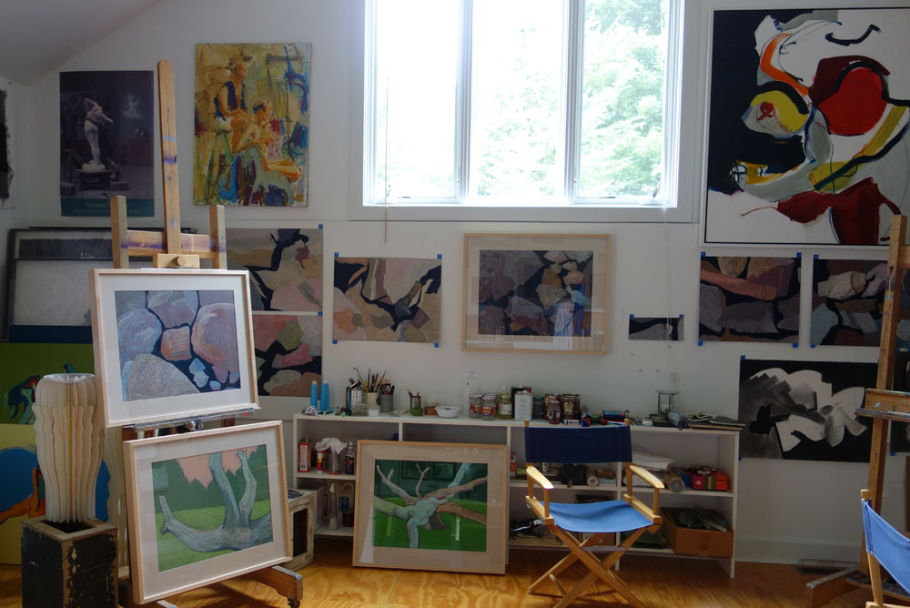 From light sculptures to big oil paintings and pastel still life abstractions, Jim’s work is always derived from the figure. He says he is influenced by De Kooning, Bacon and Gorky. That is enough to chew on. It was such a pleasure to see their place and talk over lunch. Jim plays tuba in the New Horizons Band and has work at the R Gallery in their current group show.