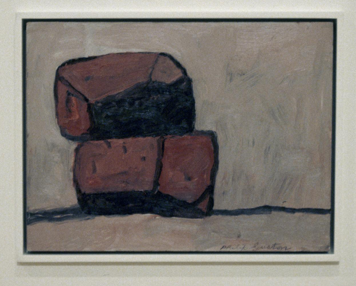 We have been pulling up the pavers that ran around the back of our house for the past week. It is back-breaking work and I have been sleeping better than ever. We reset them about twenty years ago when we moved in. The earth had swallowed them up. I was thinking they looked like Flintstone loaves of bread. Peggi was looking out at them while she brushed her teeth this morning and she said they reminded her of a Guston painting. I thought it was great observation and I took a photo of them before we started work today.