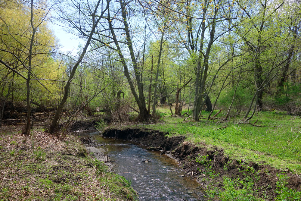 The 82 acres overlook the basin of Irondequoit Bay and lowland valley that extends south through Ellison Park. Unlike other county parks there’s old car parts in the woods and the remains of old concrete structures and decaying drainage infrastructure. We came across this fallen tree and at first thought it was the work of a beaver but then realized it was the handiwork mountain bikers trying to clear the trail. The park is now a test site for trail biking, the prefered sport of overgrown boys. There are bare trails everywhere sometimes six feet away from one another with exposed roots from ancient trees running through the paths. I’m not sure how long this experiment will run but the way it’s going if we return here in ten years I would guess the undergrowth would be gone, trampled or just washed away, the trees will have fallen over and the place will be a barren rutty hillside. Perfect for mountain biking.