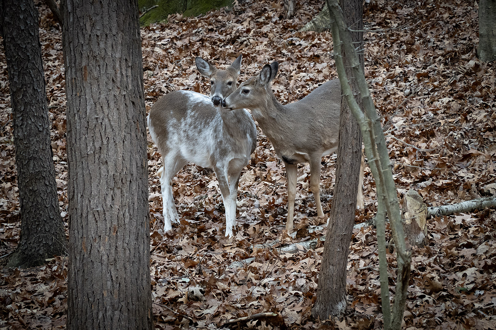 Less than 1% of the white-tailed deer population has a genetic mutation that causes varying amounts of white hair in its coat. They’re called piebald deer and this one has settled down in our neighborhood. We brought what will probably be our last load of greens back from the garden. We did two plantings of Mache lettuce this year. The hardy plants grows close to the ground and I found it really tedious to pick until I realized I could just uproot the whole plant and break the tiny roots off at home before rinsing it. It is delicious and miraculously, it seems to be multiplying just as the ground freezes for winter.