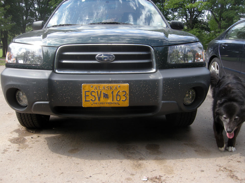 Robert Meyerowitz’s car and dog at Cobbs Hill in Rochester, NY