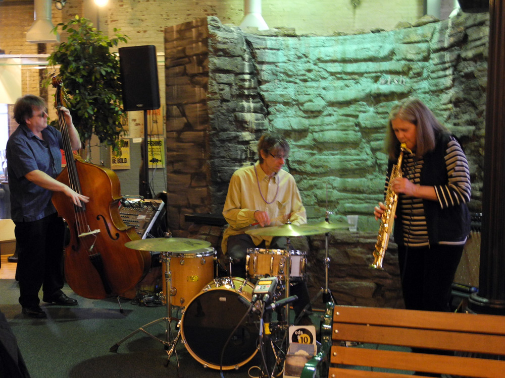 Ken Frank, Paul Dodd and Peggi Fournier playing as a trio version of Margaret Explosion at High Falls in Rochester, New York