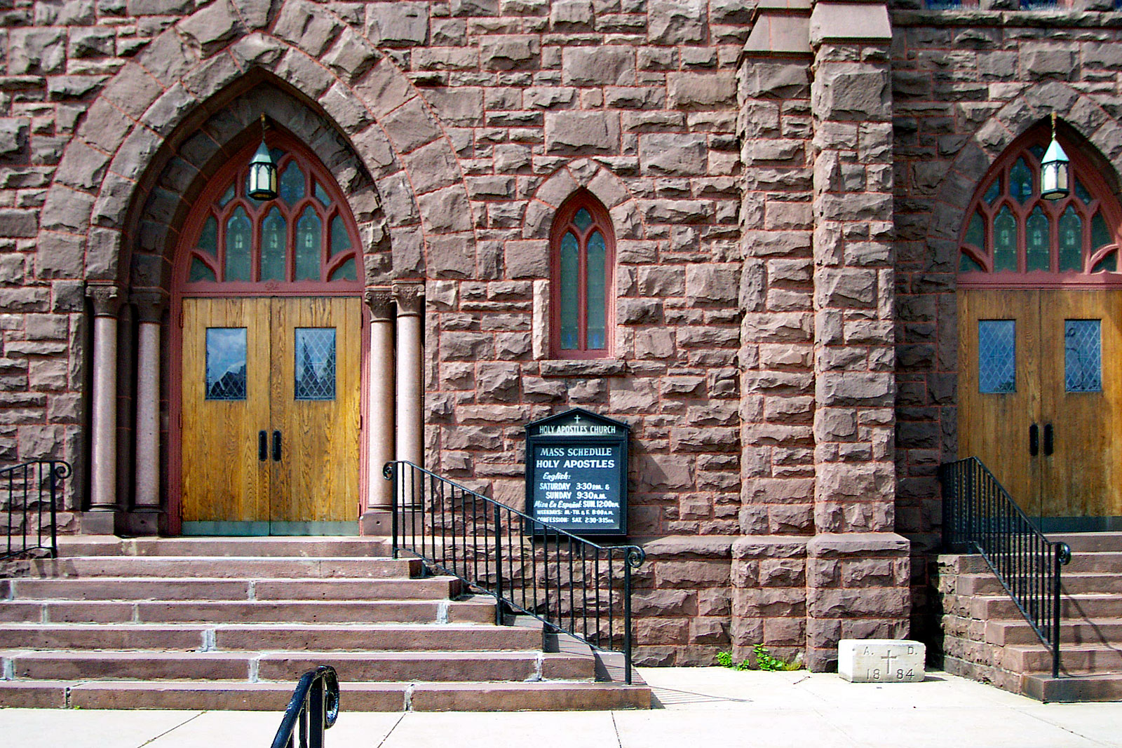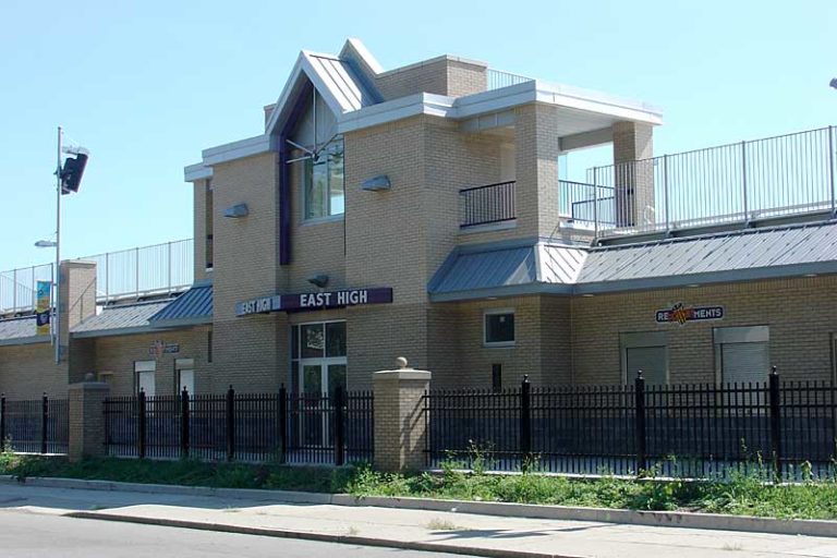 We lived on Hall Street, across from East High for twenty seven years. In 1996 I began work on Passion Play, a version of the Stations of the Cross. I pictured Christ being sentenced at East High and then working his way down East Main to the Liberty Pole where he would be crucified. I collected source material including one roll of slide film, shots of locations on East Main, with the intention of doing fourteen paintings but never got to that stage.