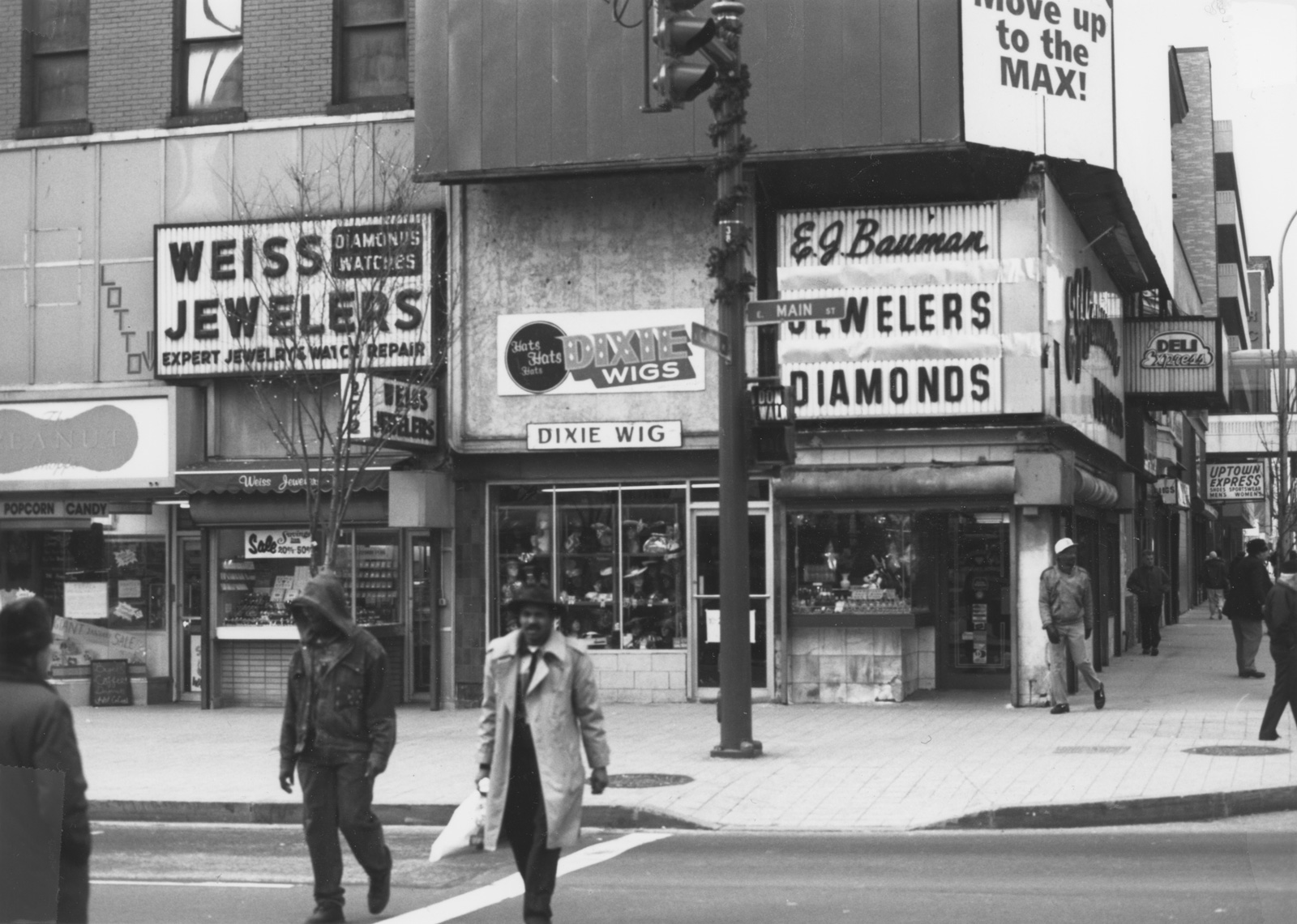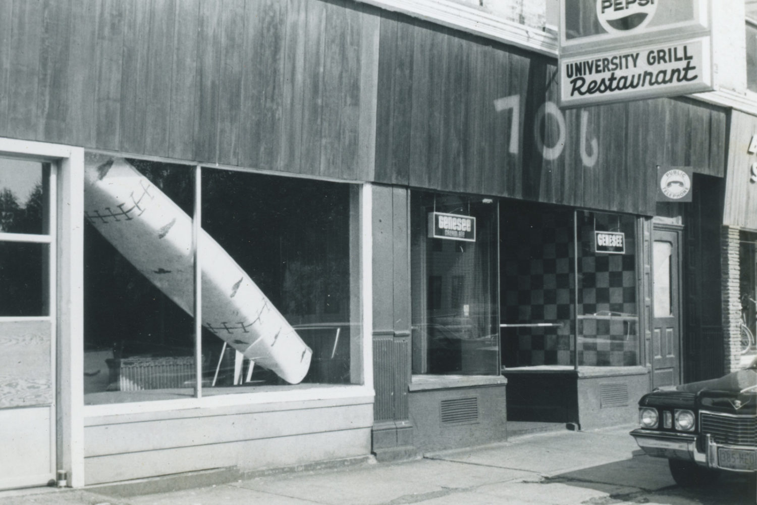 High Falls area – photo by Paul Dodd 1976Main and Clinton – photo by Paul Dodd 1976Big guy on the corner of Portland Avenue and Hudson – photo by Paul Dodd 1976Hess Gas Station on Monroe Avenue, Rochester, New York – photo by Paul Dodd 1976Model Lunch Diner in Rochester, New York- photo by Paul Dodd 1976Upton Cold Storage 38 Cliff Street – Paul Dodd photo 1976Muggs Up located where Sibley Library is today, across street from Eastman Theater – Paul Dodd photo 1976University Grill, next door to Towner’s on University Avenue in Rochester, New York – photo by Paul Dodd 1976De Luxe Shoe Store sign on Monroe Avenue – photo by Paul Dodd 1976Alamo Art Gallery on Monroe Avenue in Rochester, New York – photo by Paul DoddHoosier Bills restaurant on Monroe Avenue near downtown – photo by Paul Dodd 1976My bike in downtown Rochester 1976