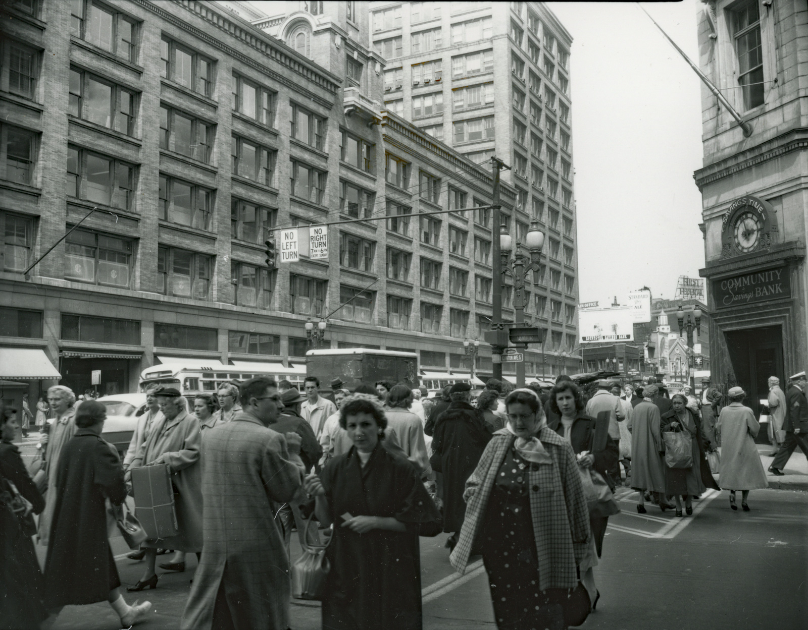 Plymouth Avenue street car – photo from City of RochesterRochester residents celebrate the end of World War I on Armistice Day, Nov. 11, 1918. – photo from City of RochesterRochester residents celebrate the end of World War I on Armistice Day, Nov. 11, 1918. – photo from City of RochesterView of Main Street from Sate Street – photo from City of RochesterGeorge Eastman’s old home 1954 – photo from City of RochesterBoats along Genesee River near Lake Ontario 1956 – photo from City of RochesterCrowd at Midtown Plaza on April 10, 1962 – photo from City of RochesterBroad Street Bridge – photo from City of RochesterMain Street from Lincoln Rochester Building, now the Metropolitan – photo from City of RochesterBuildings lining south side of Main Street bridge – photo from City of RochesterAerial view of industrial section along Genesee River in Rochester, New York. Kodak Office on Lake Avenue is seen in upper right. – photo from City of RochesterMain and Clinton, downtown Rochester – photo from City of RochesterHaloid Xerox trade show in Rochester, New York – photo by Paul Dodd 1976Funeral Directors Convention at War Memorial – photo from City of Rochester1962 Auto Show at War Memorial in downtown Rochester – photo from City of RochesterTaxi cab meter testing by Weights & Measures 1954- photo from City of RochesterAerial view of Veterans Memorial Bridge with traffic circle on Saint Paul Boulevard in Rochester, New York – photo from City of RochesterOpera in Highland Park on August 12, 1953 – photo from City of RochesterPark Avenue after snow storm in 1945 – photo from City of RochesterSouth Clinton Avenue downtown. Leon’s Typewriter is shown on the left. – photo from City of RochesterSecurity Trust Bank Construction – photo from City of Rochester 1963City Commissioner in front of Midtown Tower construction – photo from City of RochesterMain and Clinton, the unofficial four corners of Rochester New York – photo from City of RochesterView of East Main from East Avenue. Building with Topper Beer ad is site of Liberty Pole today. – photo from City of RochesterView East Main and Sibley’s – photo from City of RochesterPlymouth Avenue and Smith Street with DiPaolo Bakery in Rochester. – photo from City of RochesterClinton Avenue South at Averill – photo from City of RochesterCanoeing in Genesee Valley Park – photo from City of Rochester“Keep Your City Clean” campaign promotion – photo from City of Rochester
