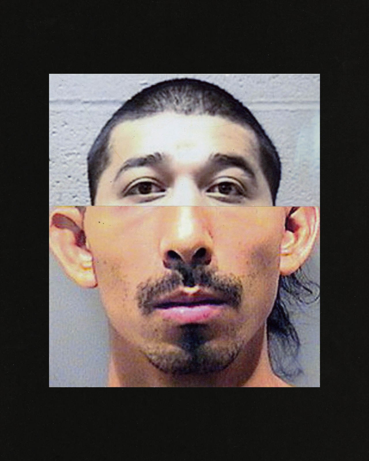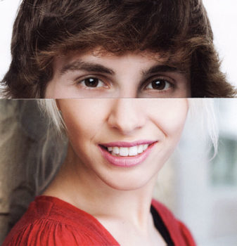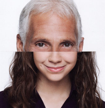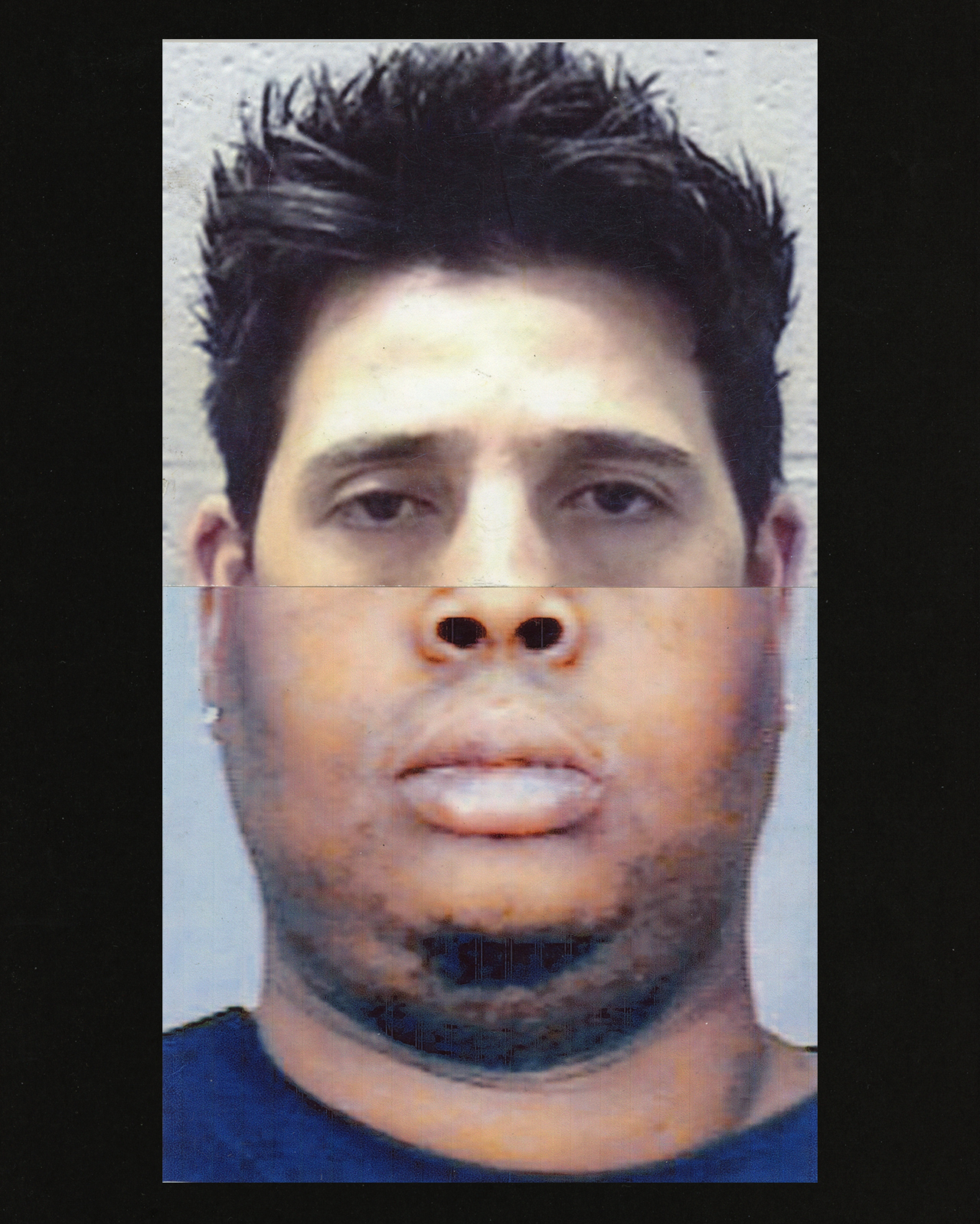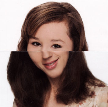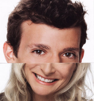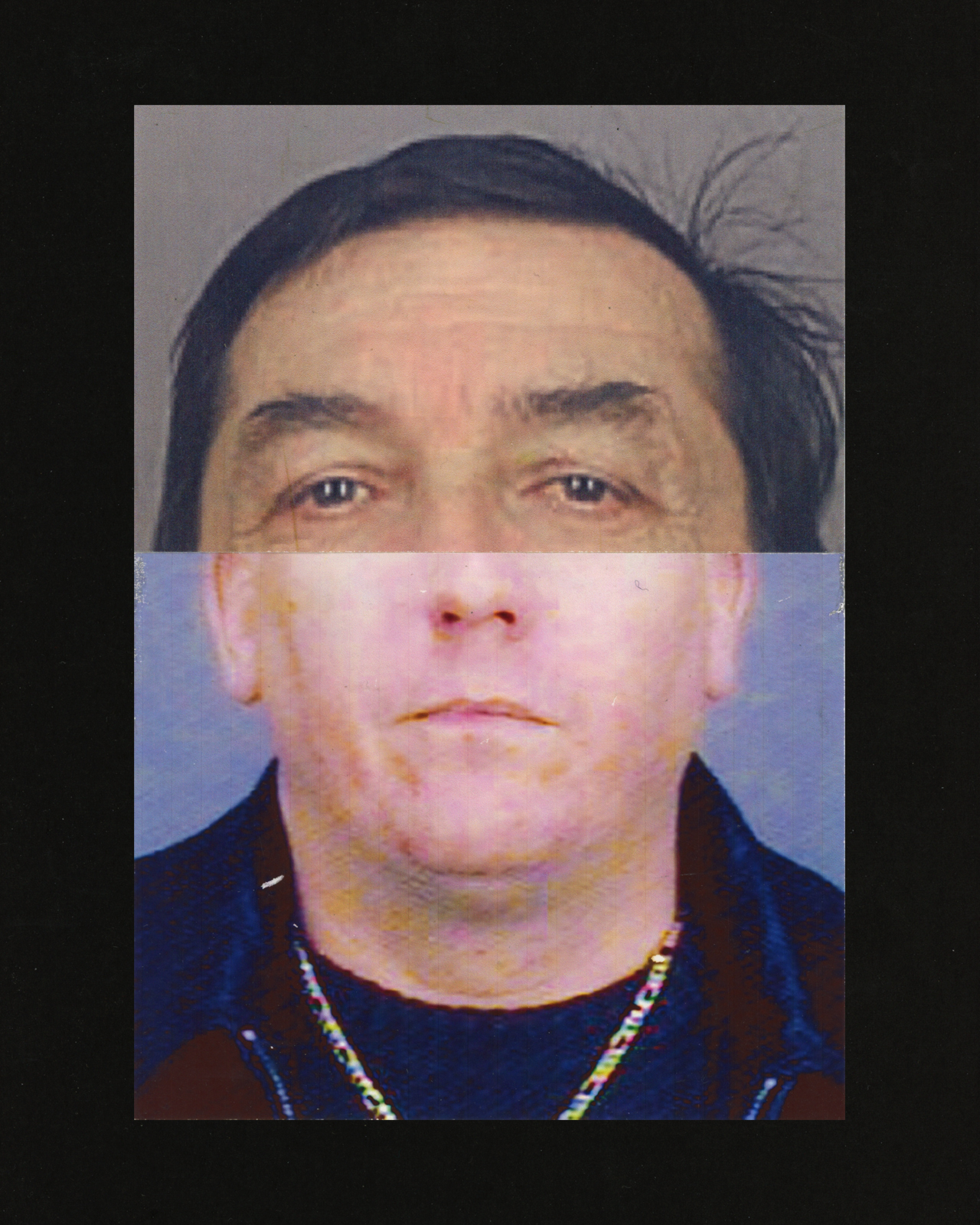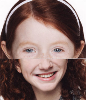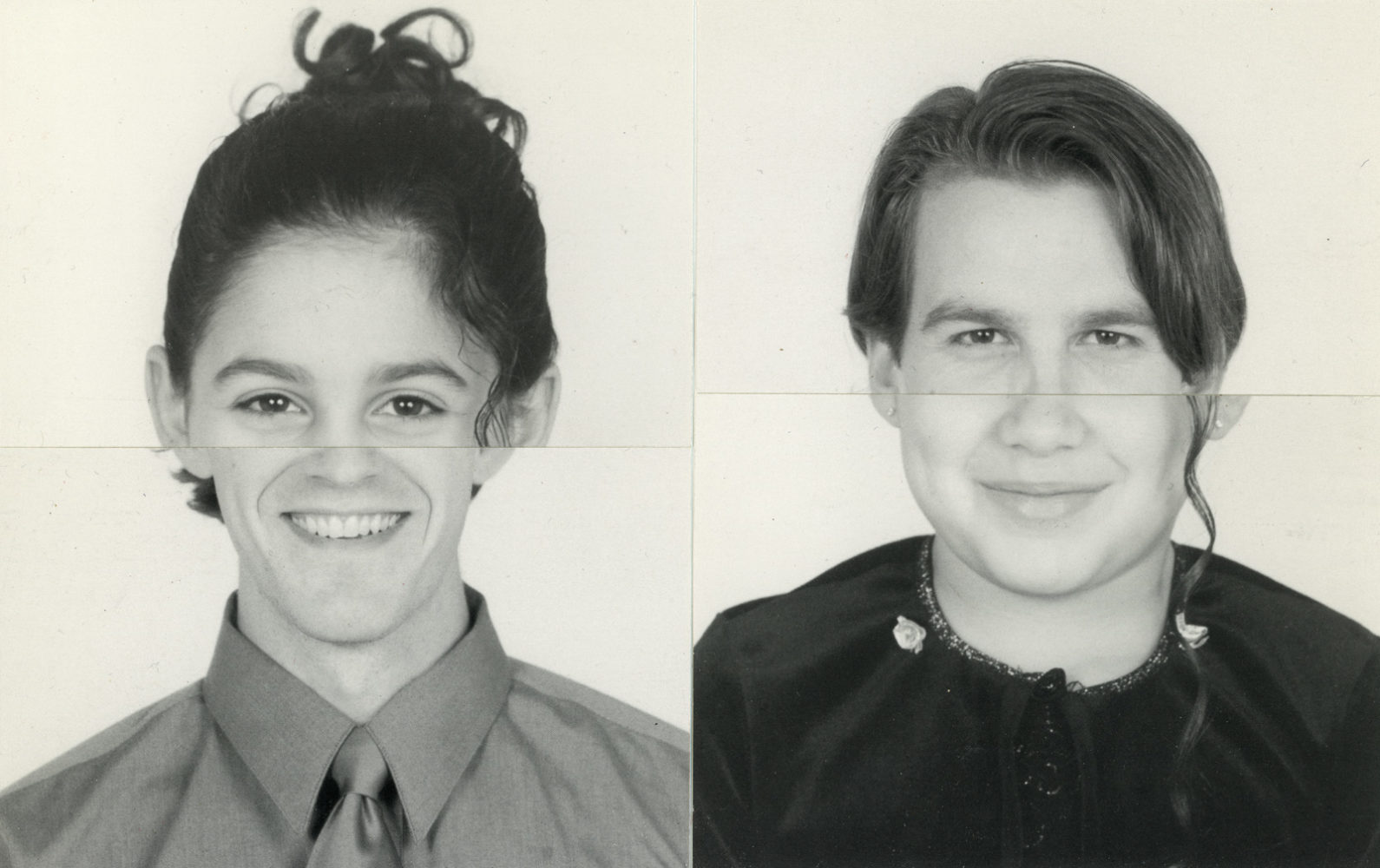 These headshots were B&W prints, 8 1/2 x 11s, sent to us by an agency in hopes we would hire their models. There’s two poses on each print, a head shot and a full body pose. I picked two headshots, sliced them, swapped one with the other and pasted them in a three hole punched notebook. I got pretty good with an X-Acto knife back back in the cut and paste days of graphic arts.