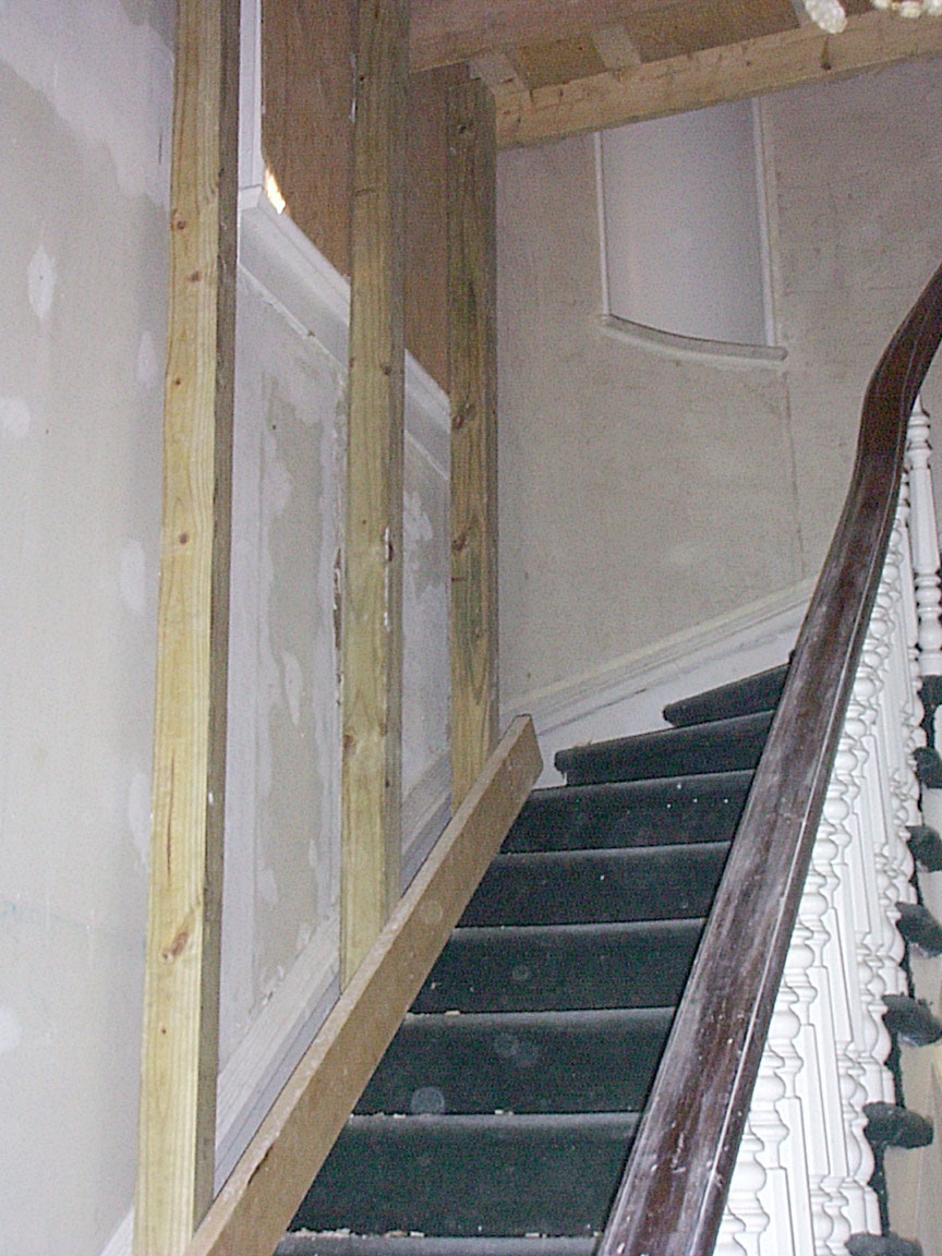 It took me almost three days, four pencils and two erasers to draw the thing. I tried to tie it all together with six Mexican band members working their way up the stairs. I painted the background first with Peggi’s help. You may not be able to get this view once the etched glass goes in this opening.