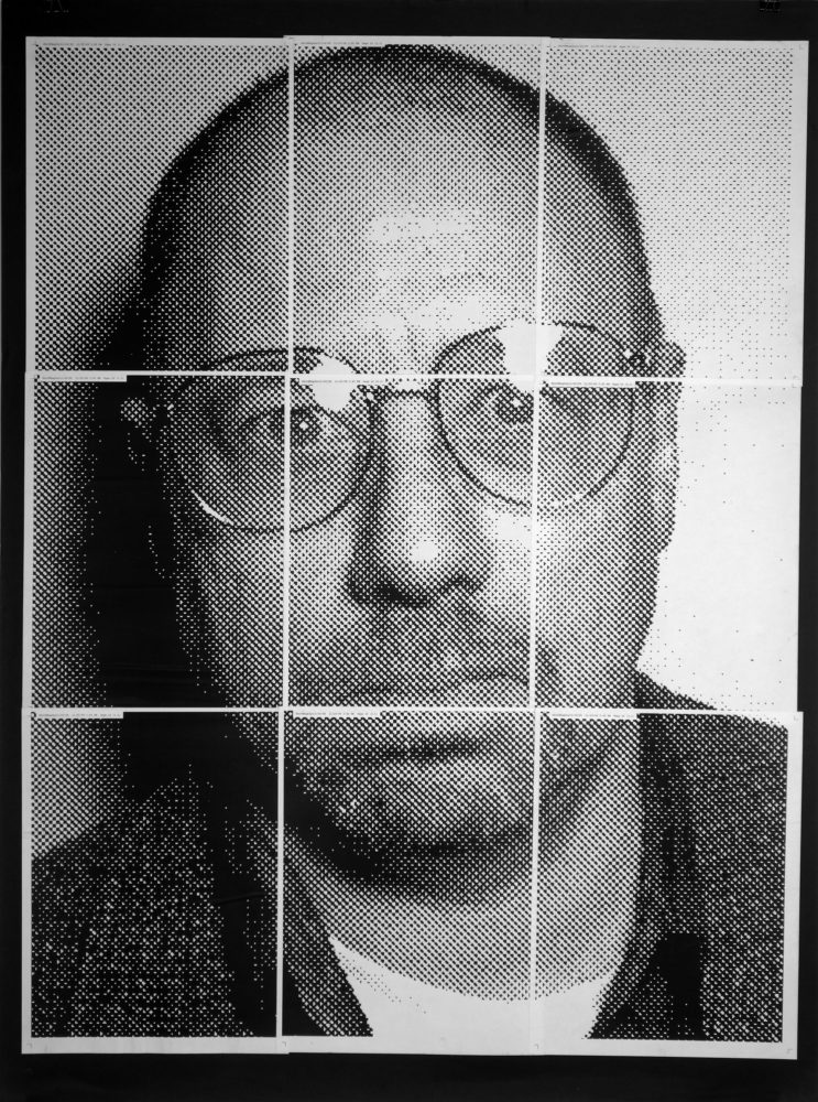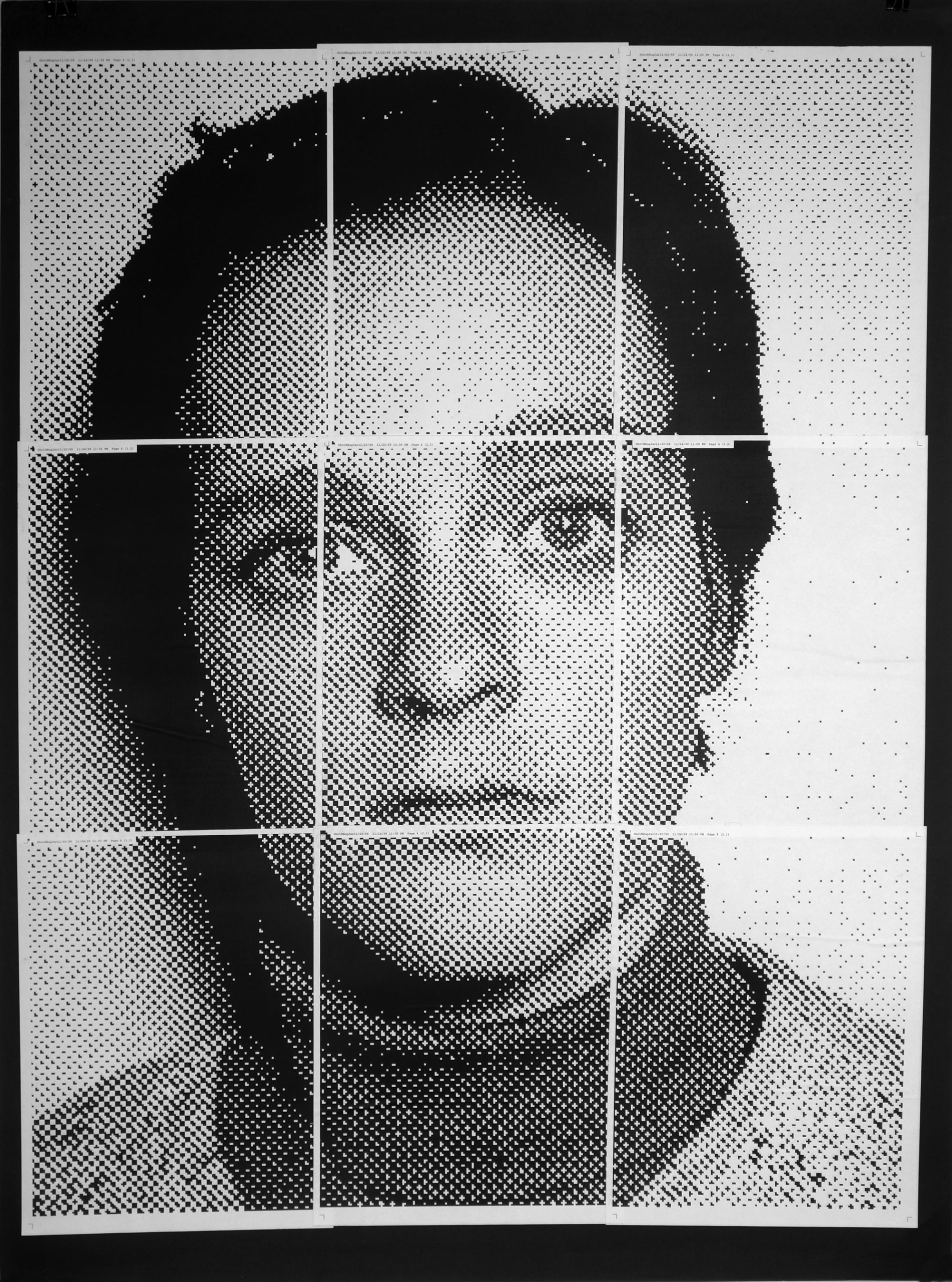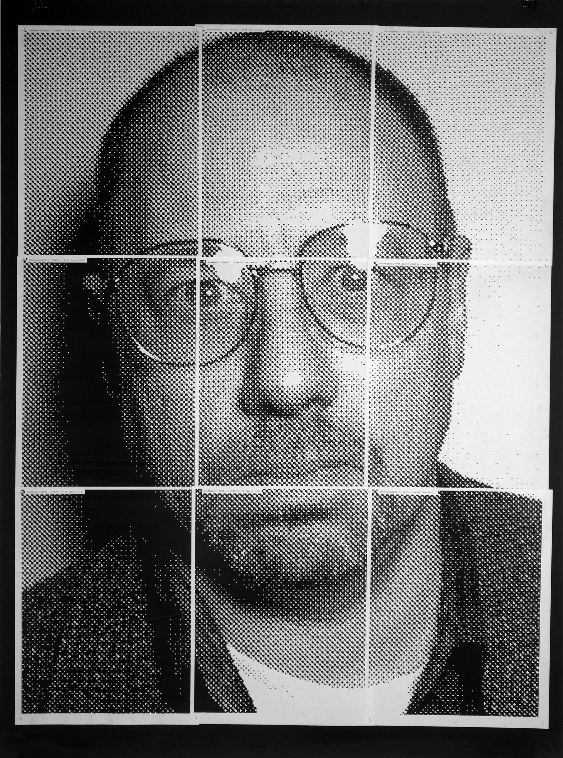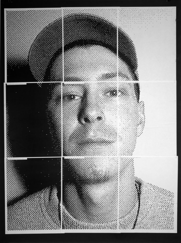 I was using a one megapixel Kodak DC210 camera that my father bought at the Kodak Employee Camera Shop. I brought home about thirty photos that night and took them into PhotoShop where I converted them into black & white bitmap photos with a pronounced dot pattern. I created Quark documents to scale and printed tiled 8 1/2 x 11 pages on our laser printer. These prints were shown in the Bug Jar a few months later in 1998. The ten below were shown again in the 2017 Rochester Biennial at Rochester Contemporary, a show called Witness.