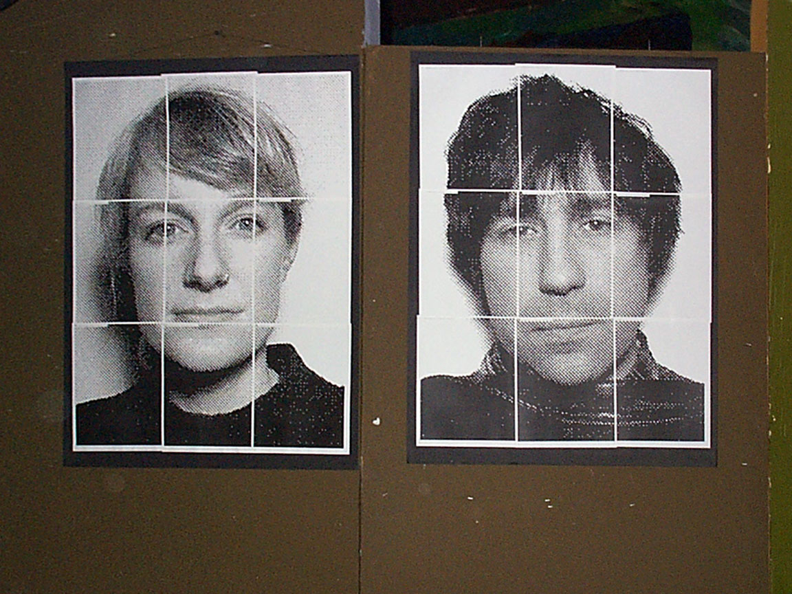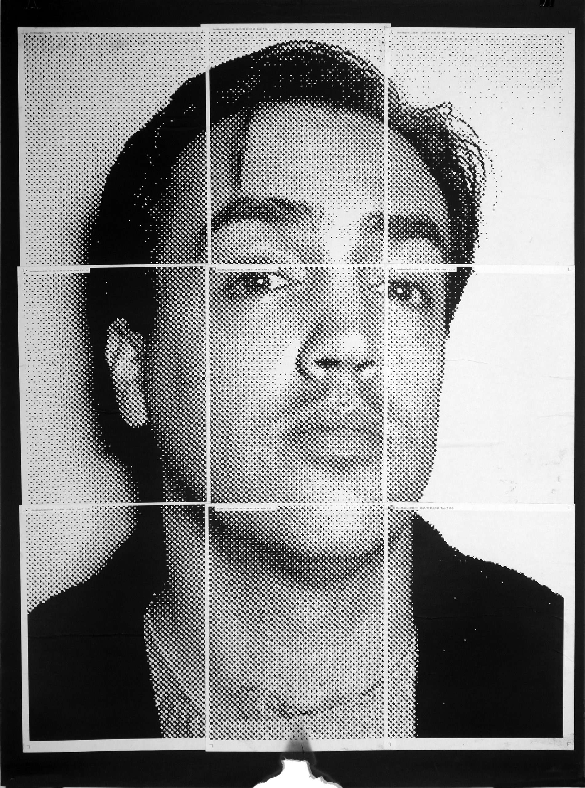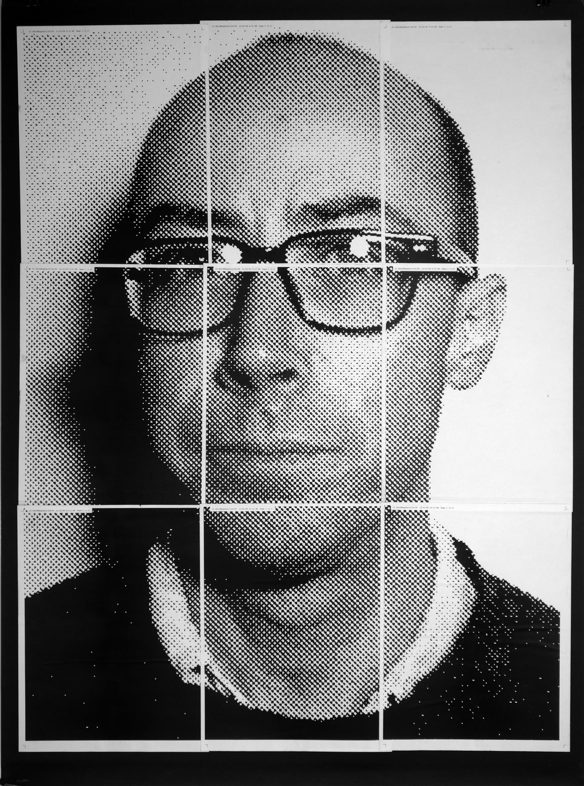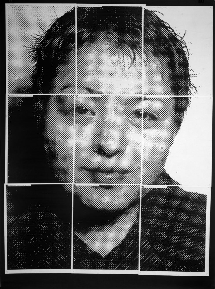 I was using a one megapixel Kodak DC210 camera that my father bought at the Kodak Employee Camera Shop. I brought home about thirty photos that night and took them into PhotoShop where I converted them into black & white bitmap photos with a pronounced dot pattern. I created Quark documents to scale and printed tiled 8 1/2 x 11 pages on our laser printer. These prints were shown in the Bug Jar a few months later in 1998. The ten below were shown again in the 2017 Rochester Biennial at Rochester Contemporary, a show called Witness.