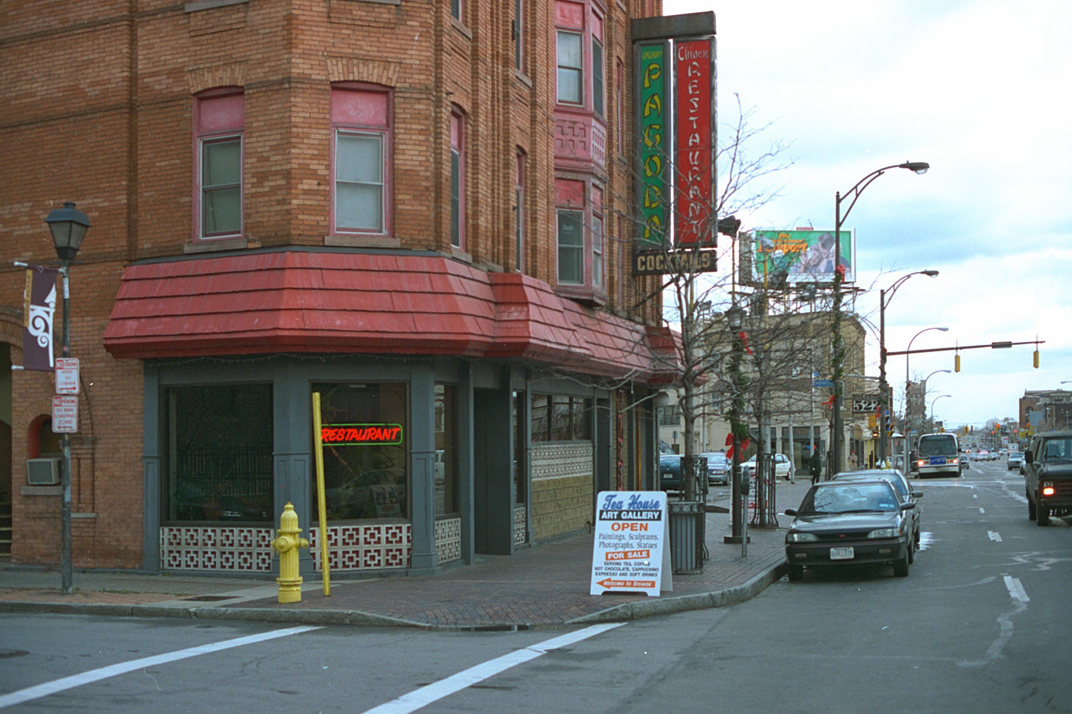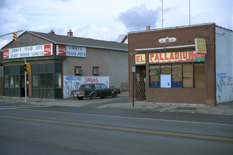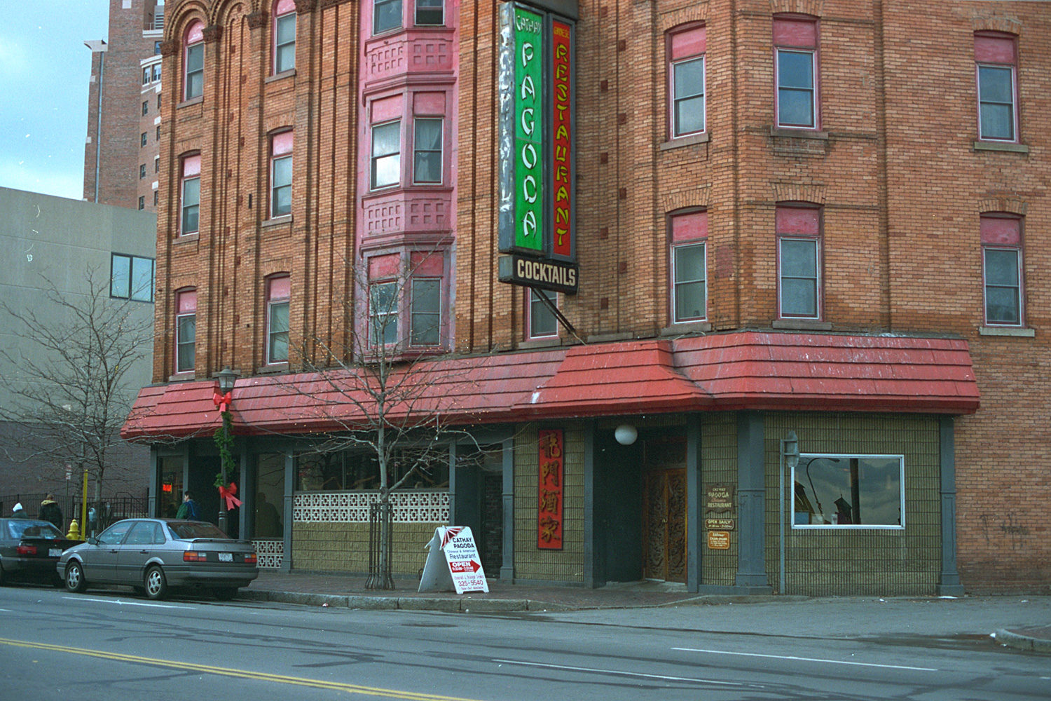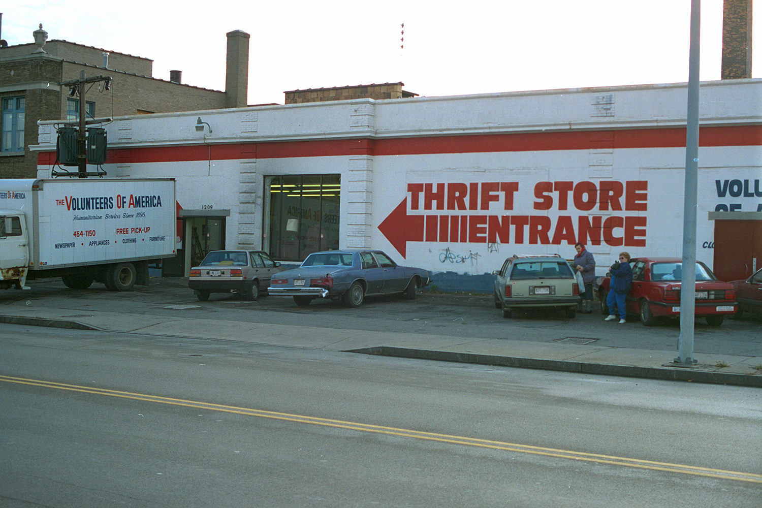 In 1996 I took a role of 36 slides as location source material and used the images in the digital collages that became “Passion Play 1998.” I planned to retell the story of the crucifixion by having a contempory Christ sentenced at East High, near where we lived, and crucified downtown at the Liberty Pole. I travelled this route to work everyday on my bike. So many of the businesses and even some of the buildings are now gone. The photos become more interesting over time.