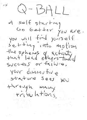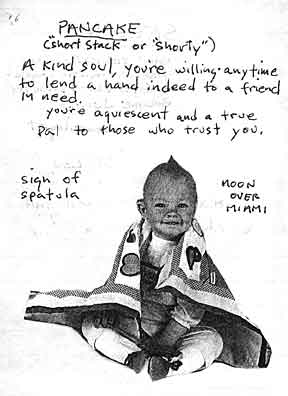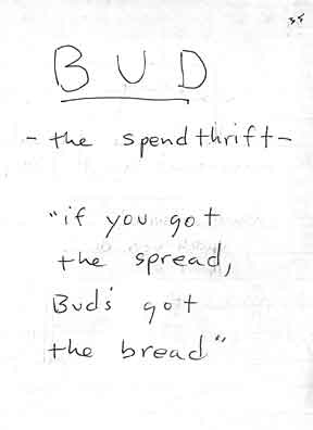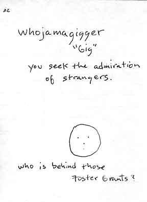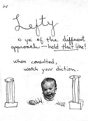 My father had cataract glasses; they don’t bother me at all; I like them even; the way the eyes swim around. The contact lenses were another story. They were so heavy that they had to fit the entire front of the eyeball. Probably take only about four or five shots to get a decent buzz on. He weighed three-thirty and talked with his mouth full. Very loudly. And as you could imagine. Always. I mean, I guess you’d eventually develop a knack. There was a little counting thing I did involuntarily wondering when he was going to swallow it. Three-thirty is the combined weight of me and Shelley plus Sandye or Marion these days, give or take, know what I mean? No wonder I was nominated for the Nobel Prize. That was so scientific. Dynamite baby!