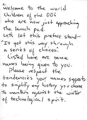 Y2k, the least hoary of predictions for 2000, our pal the smokescreen? I’m ready. I took the label off the can of french-cut wax beans and bought some staples. Sears. We were almost out. There weren’t enough to get the plastic up.