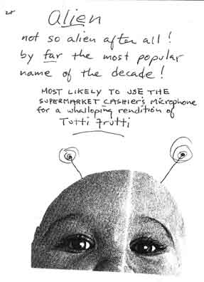 Let’s say one is in deep space and has to concoct an emergency landing on an uncharted and potentially hostile planet so as to make a play on one of one’s crew members who is like this total fox whom one believes may have been surreptitiously checking one’s rear, or “butt”; if you will. To make the maneuver plausible, first thing: pan out and try to detect signs of life. No simple task; because in order to detect signs of life one must assume life exhibits perceptible life-like signs. So one must goof around with a flashlight for a while until the total fox comes sneaking up behind one. “Sir?” And one jumps about half a kilometer straight up. And as one gets a peek over the horizon one thinks; guess we won’t be spending too much time searching for signs of life on this forsaken hell-hole. Really small. When one lands, she is still standing there. “Sir, shouldn’t someone have a look at the damaged craft?” I’ll have a look at your damaged craft, you little monkey. “No, I think we oughta spread out; you stick with me, and look for signs of intelligent life this time.” And she pouts. “Sir, how will we know if we’ve found it, you know, if it’s intelligent or not like?” And one is starting to change one’s mind about the whole set-up, “Lookit,” tapping off the features on one’s palm with the side of one’s other hand, “Ift it speaks English,” tap “holds what appears to be a weapon with lots of concentric circles on it,” tap “refers to you as ‘Mere Earthling’,” tap “and to Earth as ‘Your puny and disgusting zip code’,” tap tap “threatens you in any way and or uses semicolons correctly. Got it?” tap tap tap. “Now I’m gonna…”