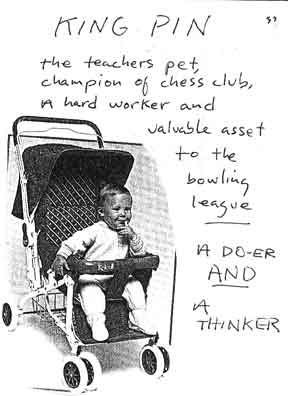 And look; here’s the photo of the quietest seniors, Karen Rosen looking like the camera may be a rearing mule, and Pete in his rubber raincoat, sitting on the stairs. Smiling.